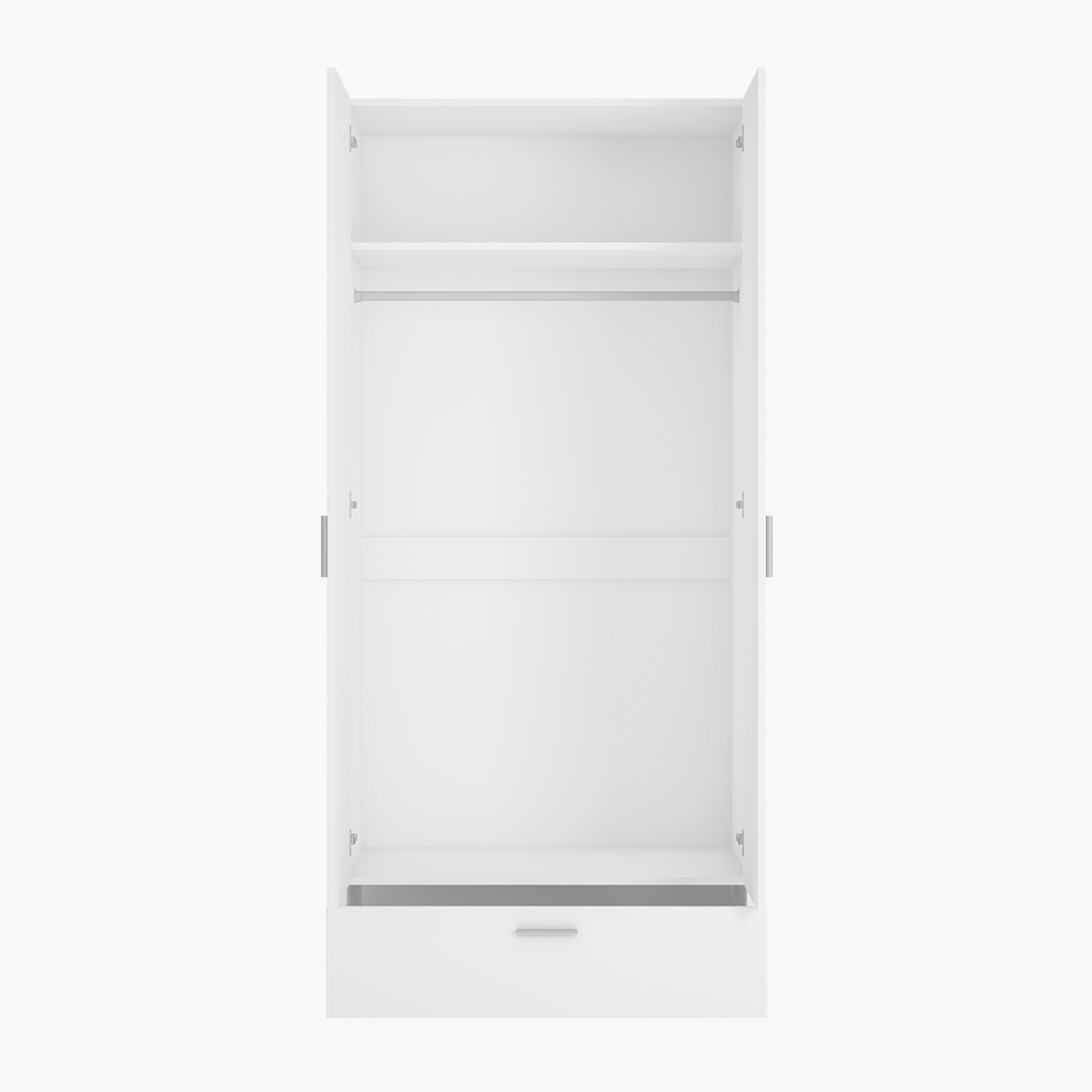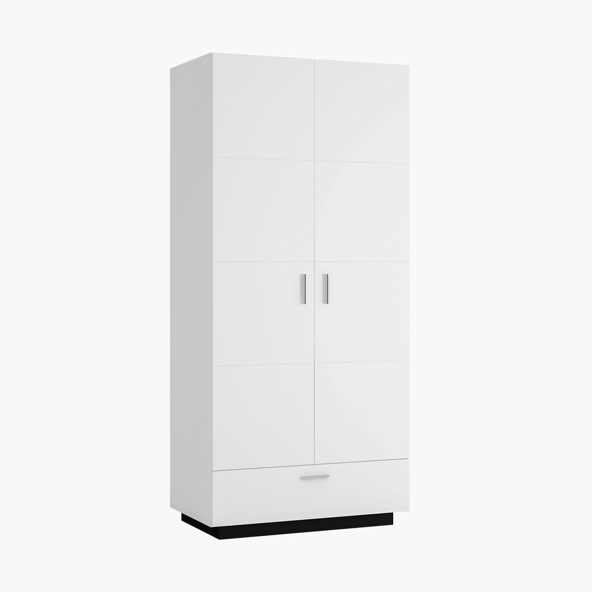 Szafa 2-drzwiowa, z szufladą i drążkiem, biały połysk, metalowy uchwyt