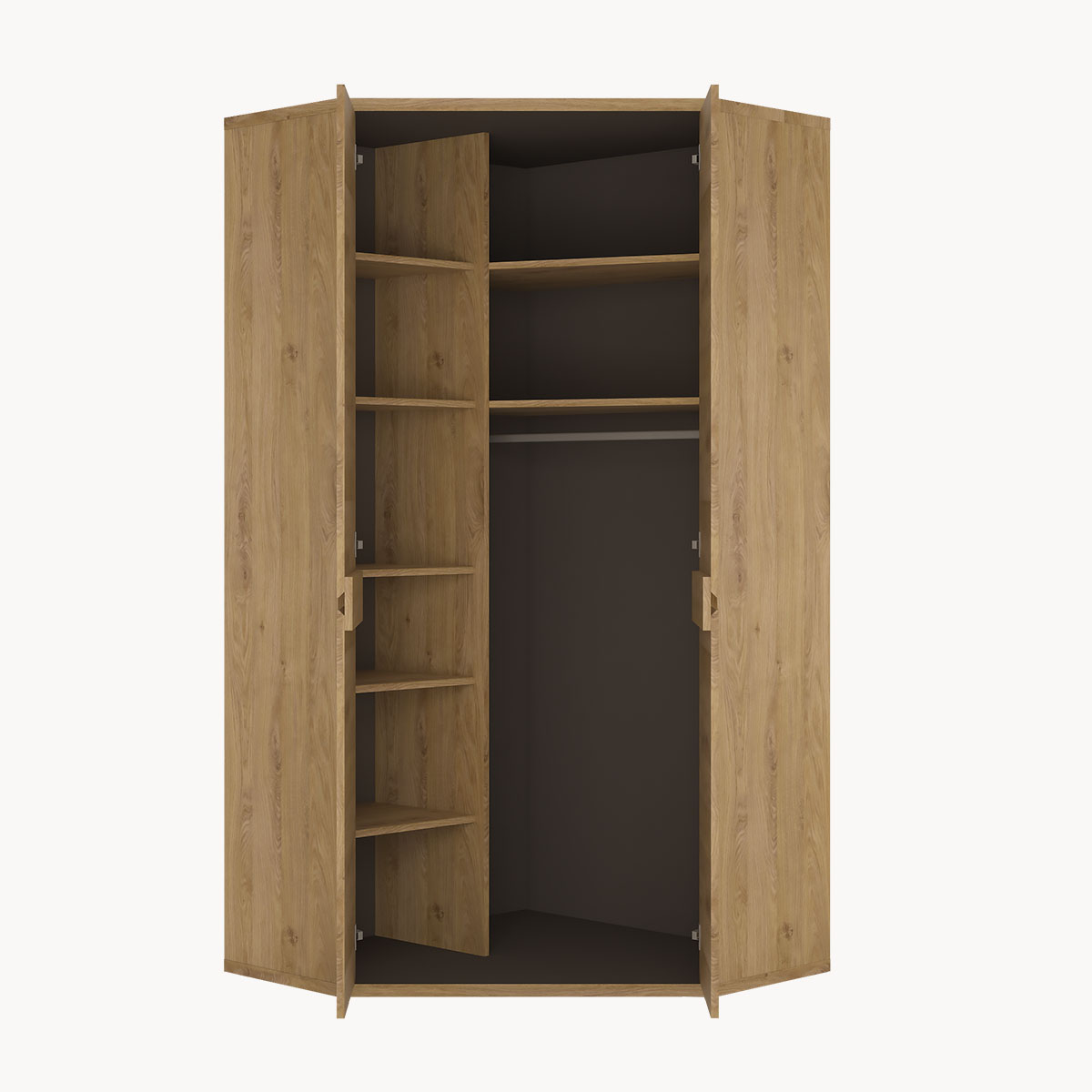 Szafa narożna 2 drzwiowa, drewniany dekor, z drążkiem