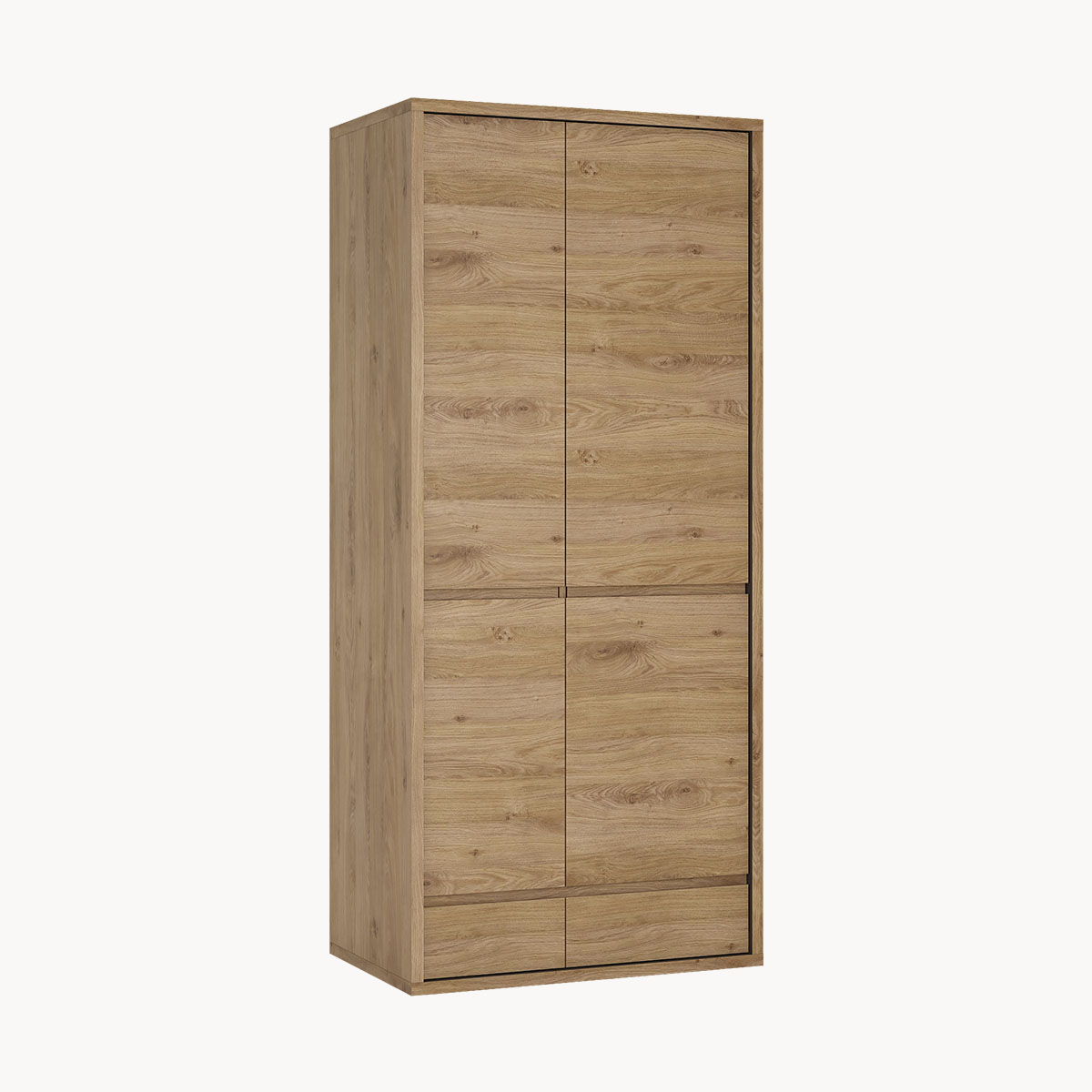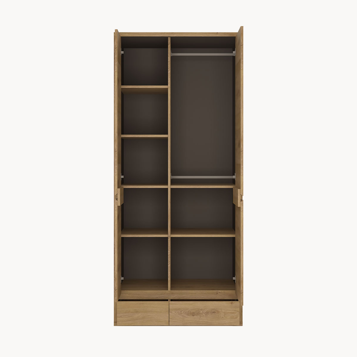 Szafa 2 drzwiowa, drewniany dekor, z drążkiem i półkami
