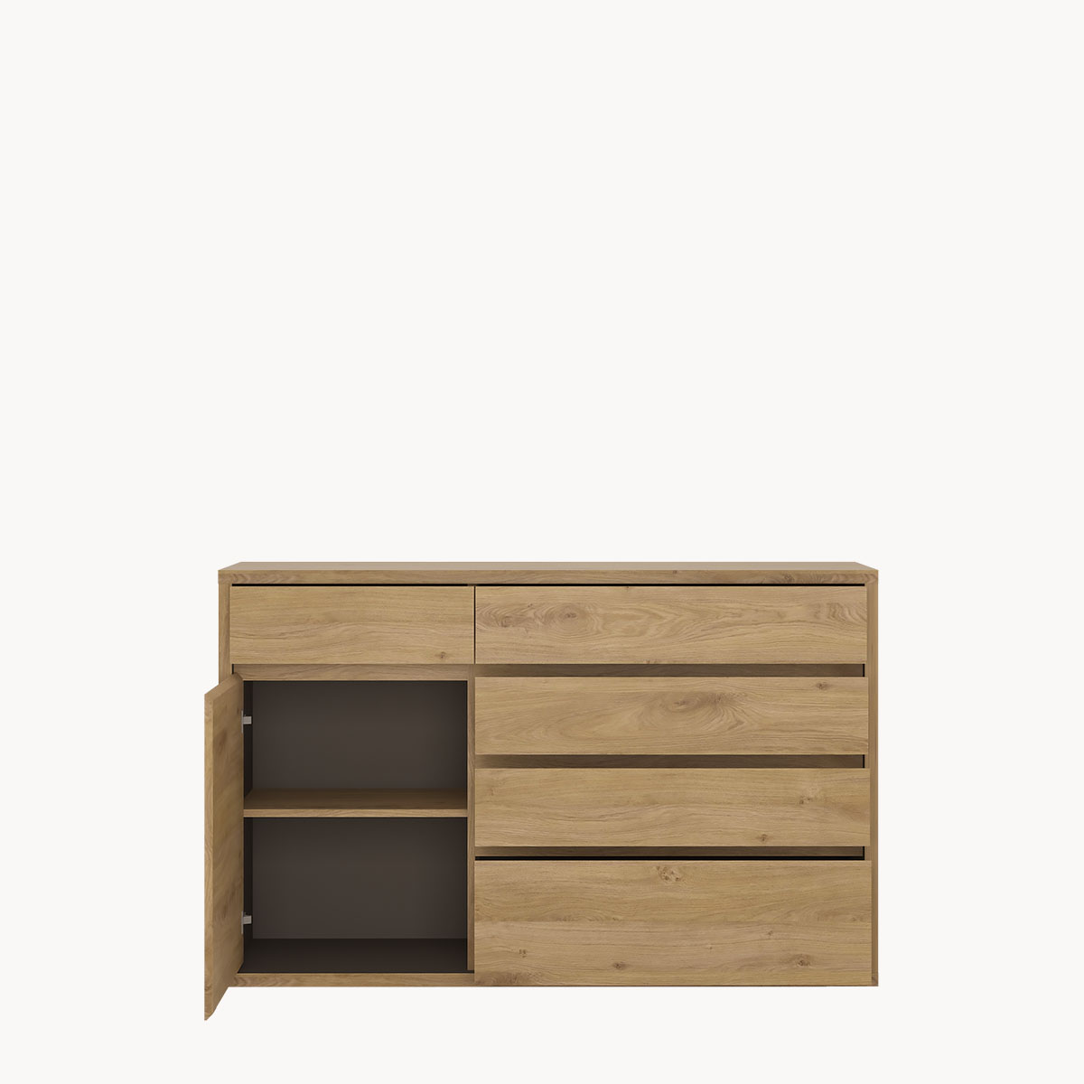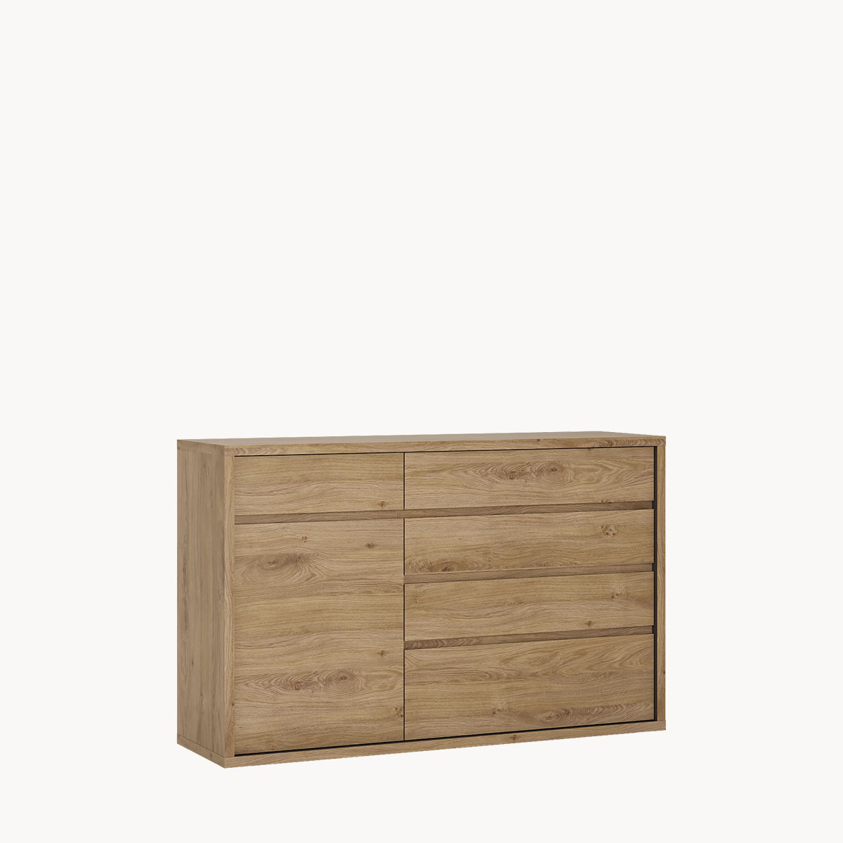Szeroka komoda, z 6 szufladami, drewniany dekor