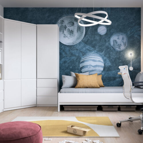 Dobrym pomysłem jest wybór jasnych mebli z kolekcji Amazon, które rozjaśniają nawet małe pomieszczenie, czyniąc go optycznie większym. Bardzo ważne jest stworzenie wewnątrz przytulnej atmosfery.W końcu pokój dziecięcy to azyl i schronienie, w którym spędza się sporo czasu – bawiąc się, ucząc i odpoczywając.