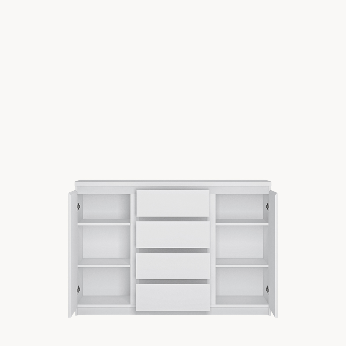 Komoda 2-drzwiowa, 4 szuflady, biała
