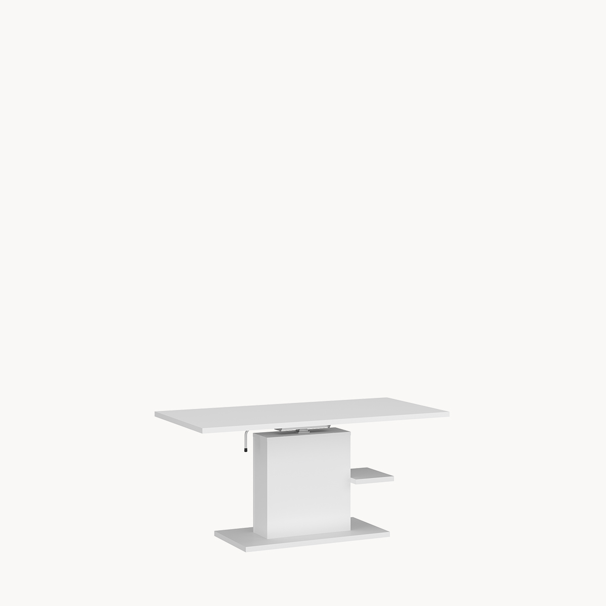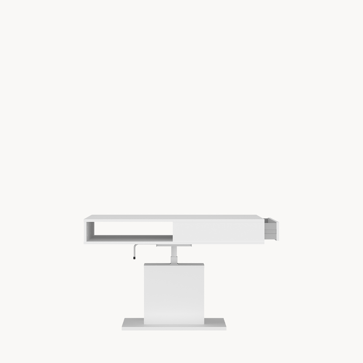 Ławostół z szufladą i półką, rozsuwany i podnoszony blat, biały