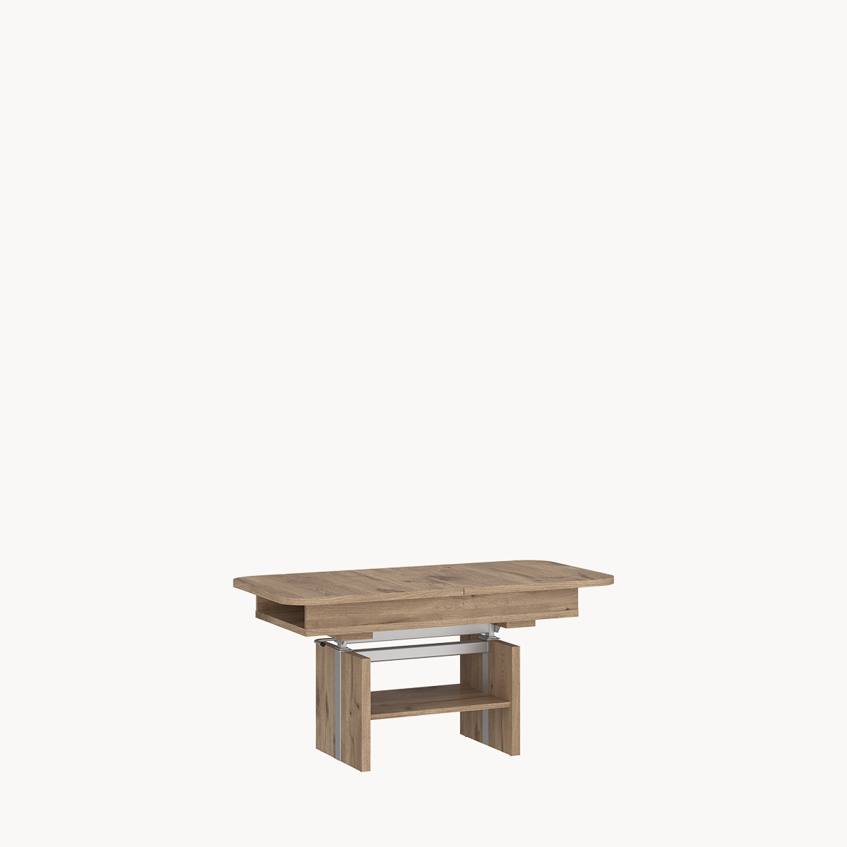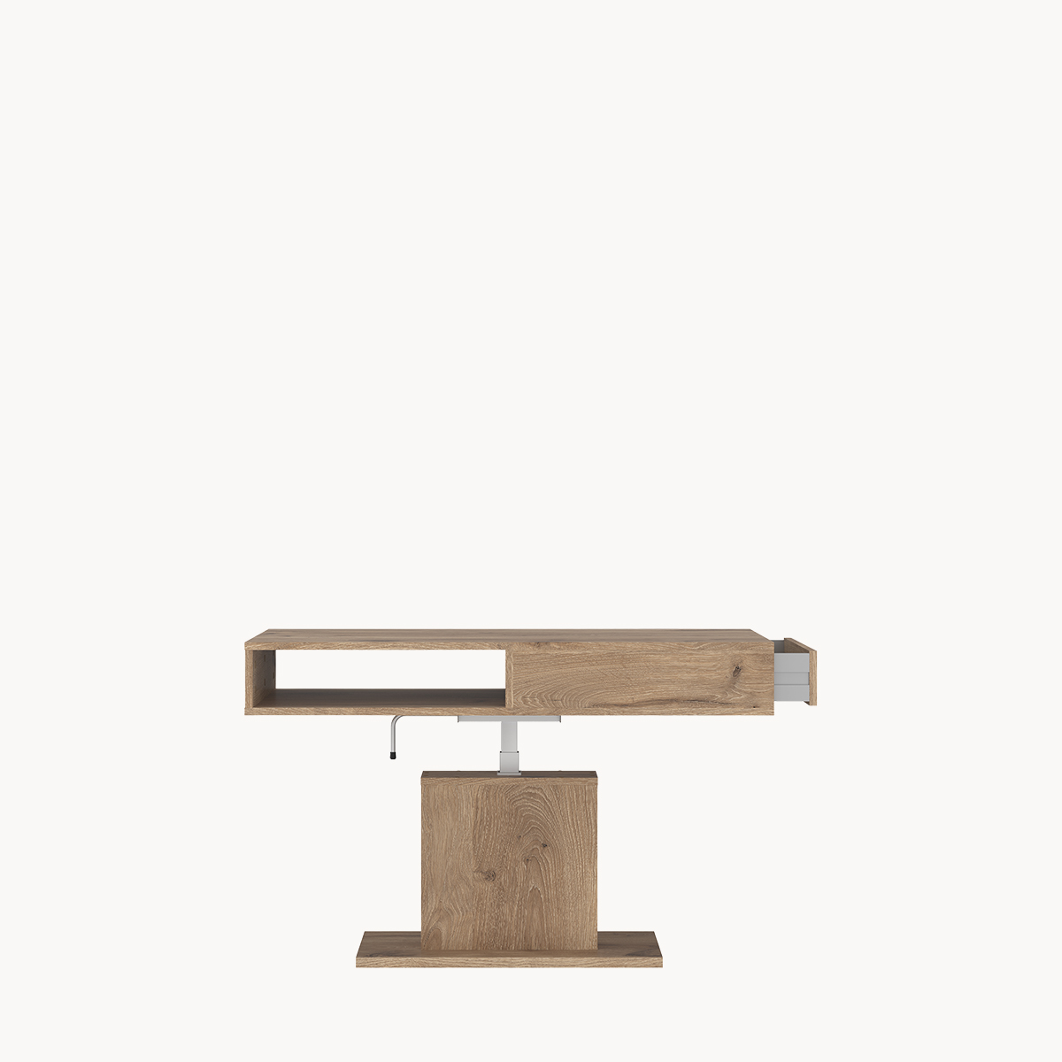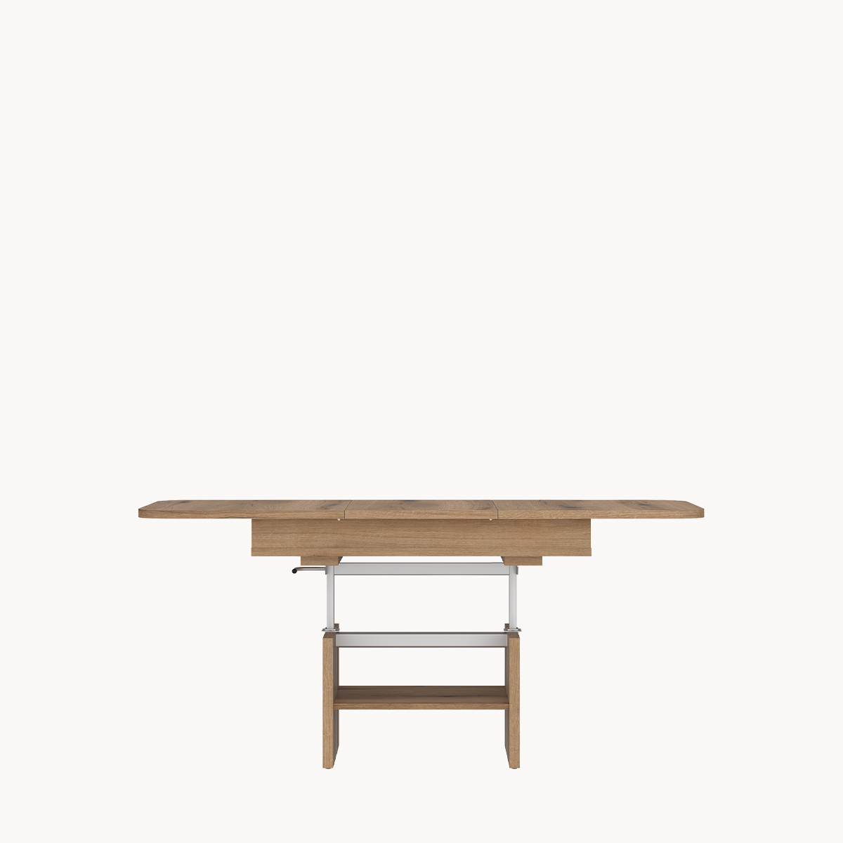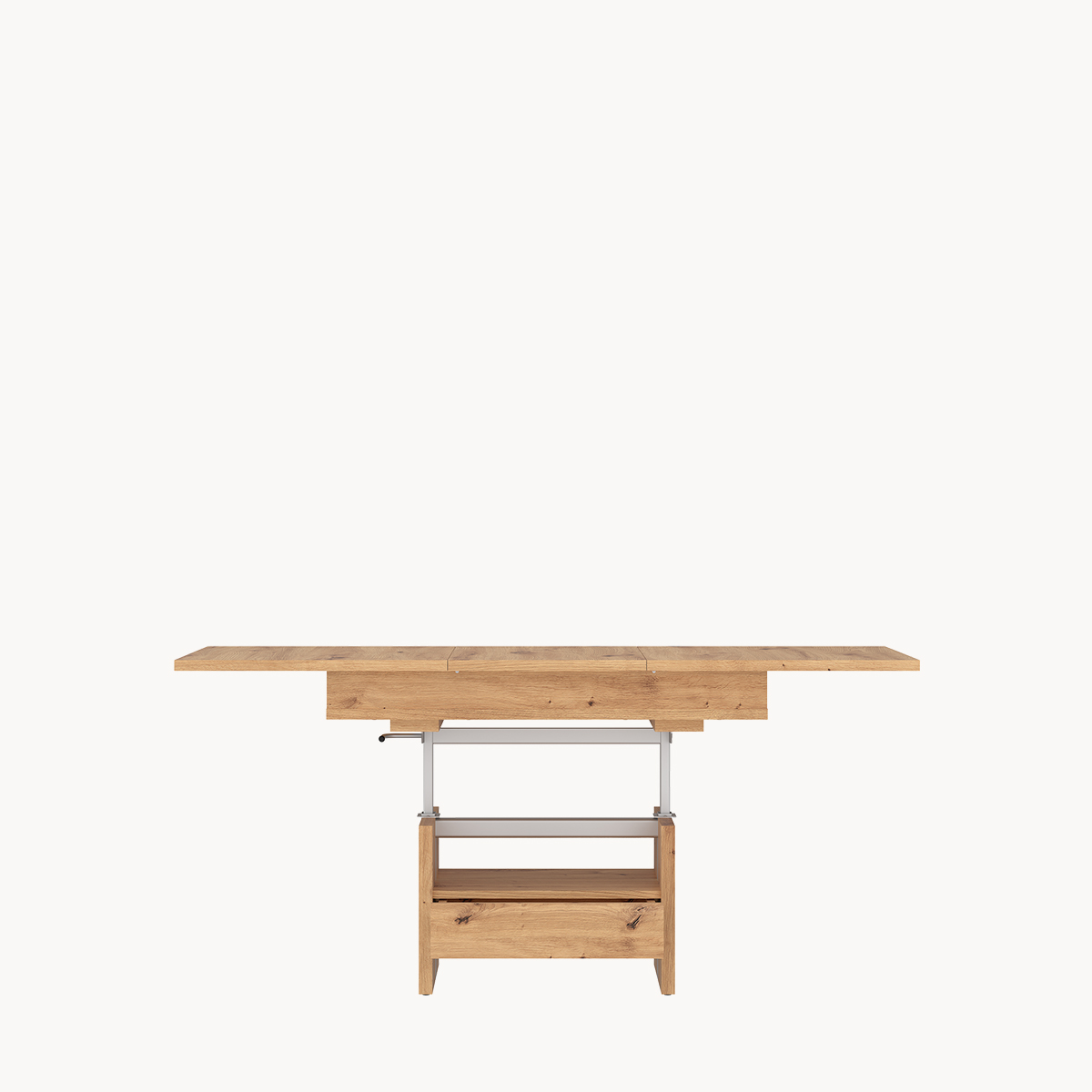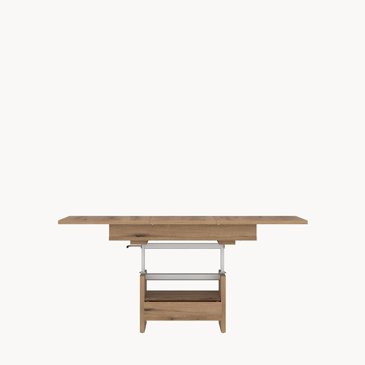 Ławostół z szufladą i półką, rozsuwany i podnoszony blat, dekor drewno