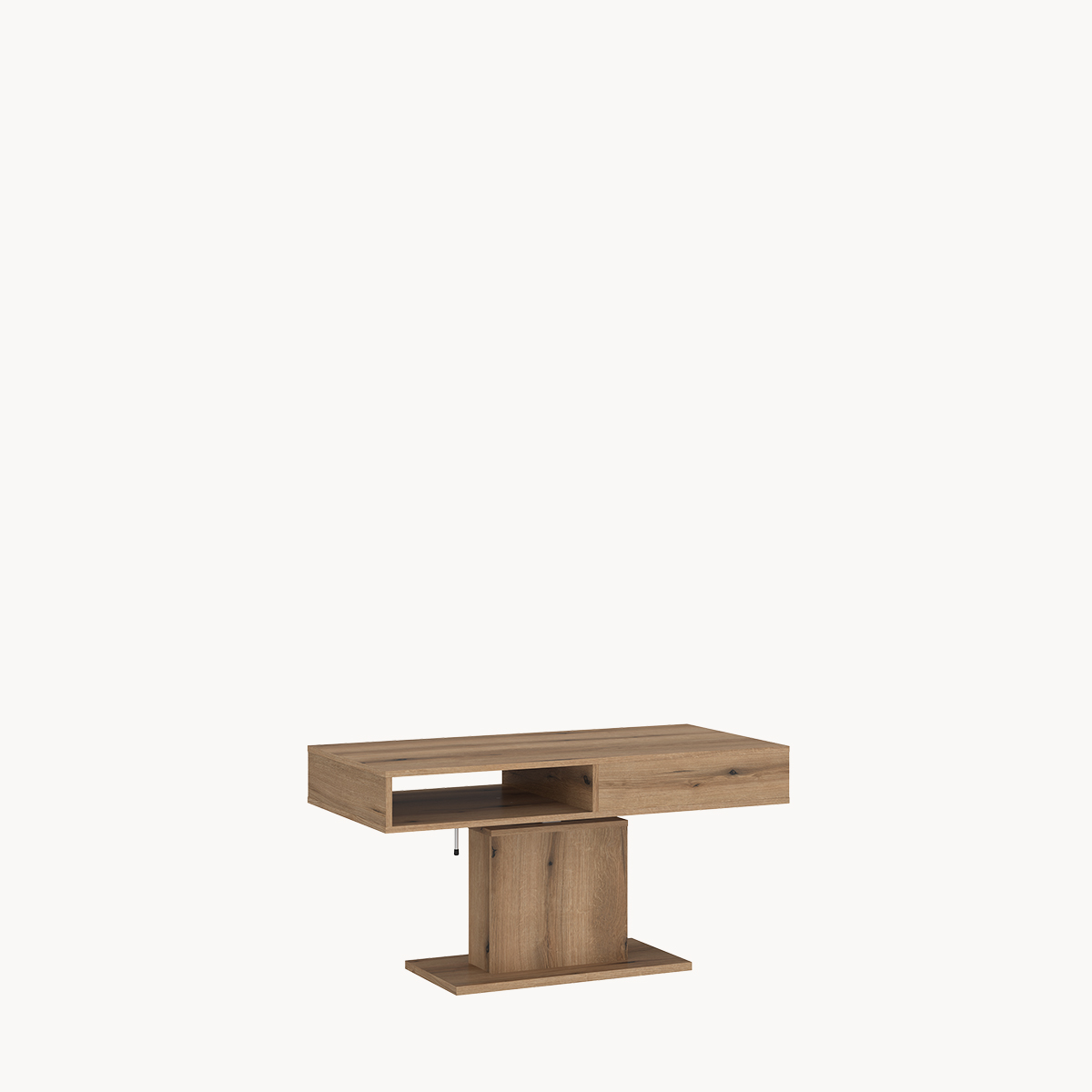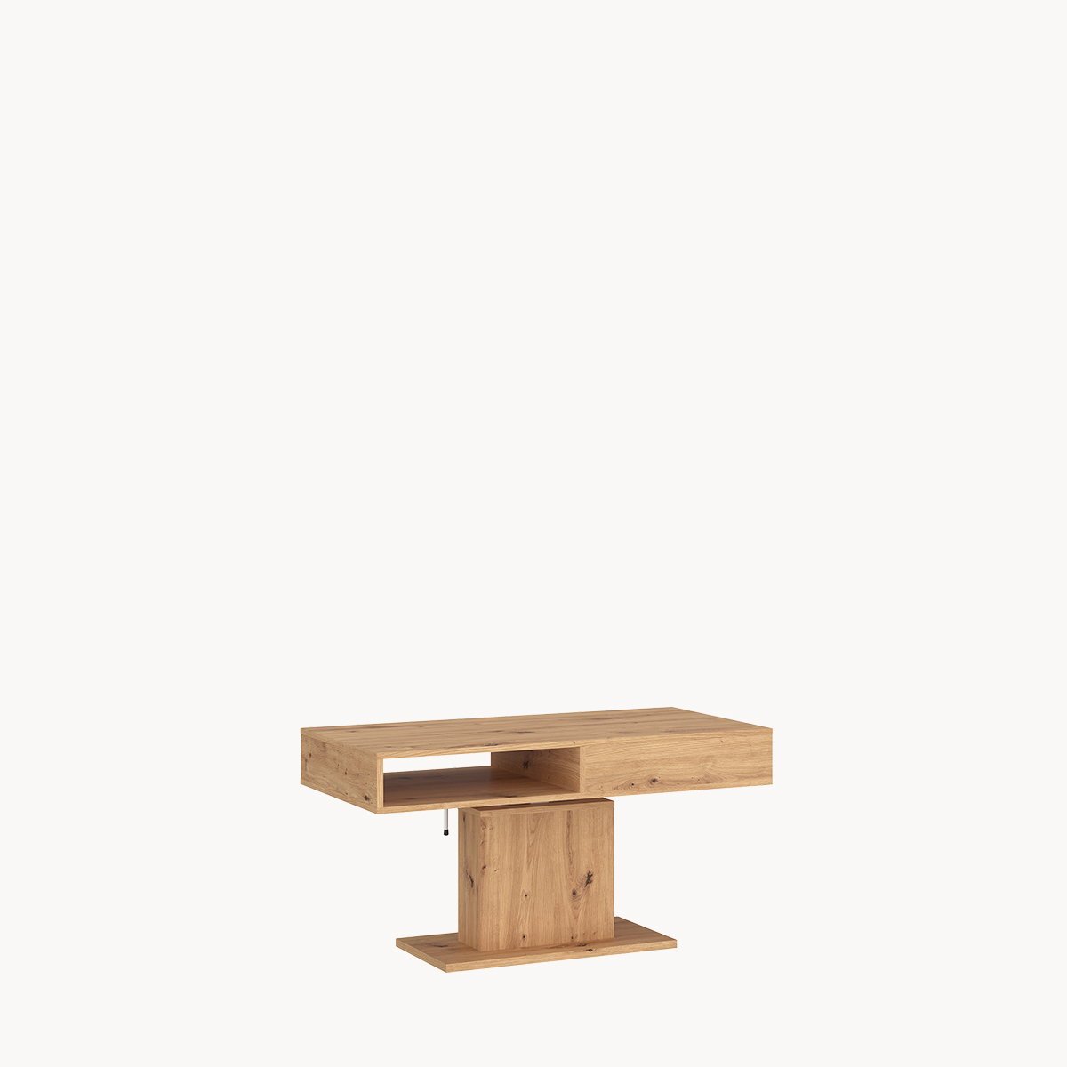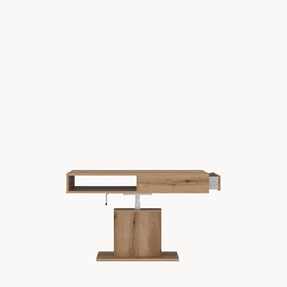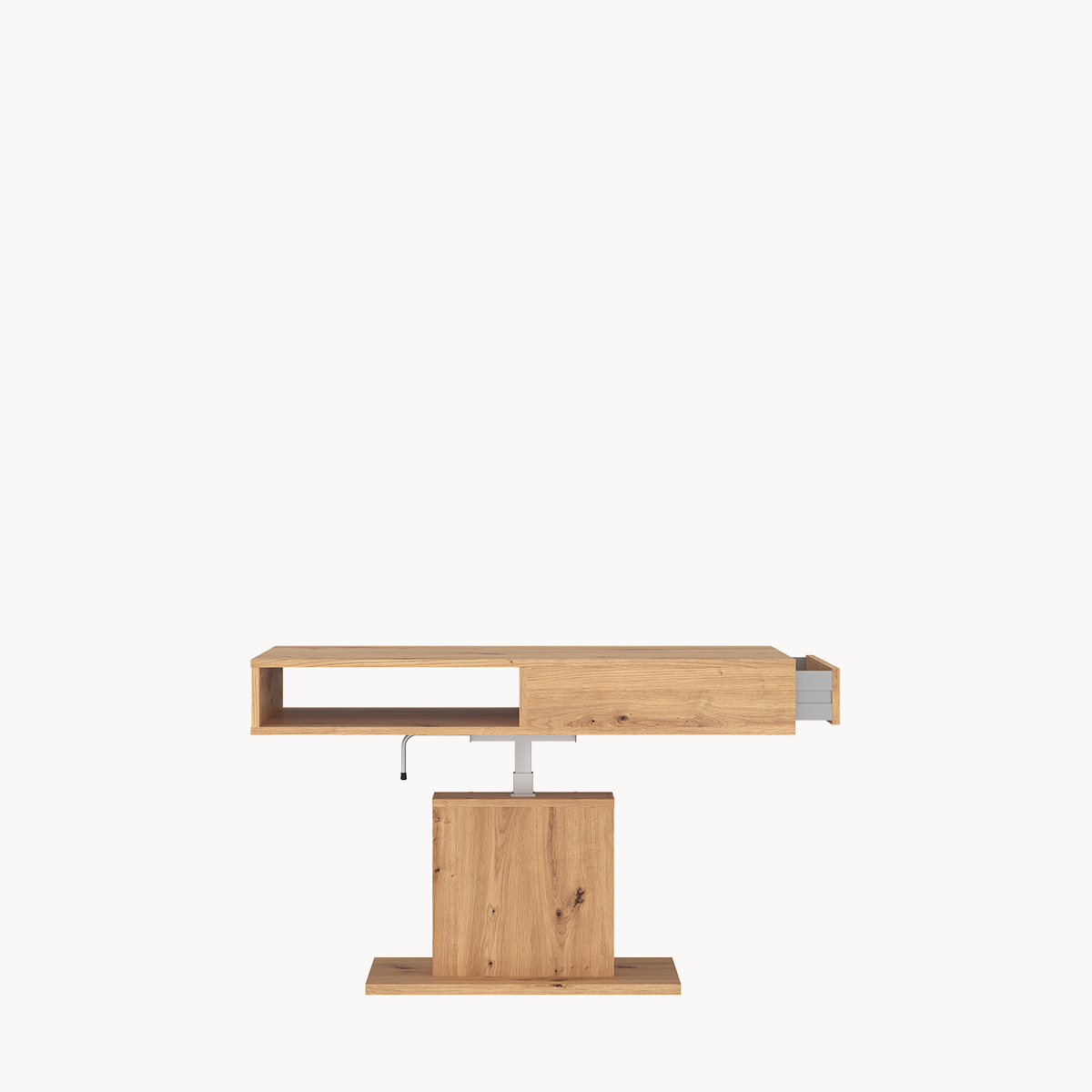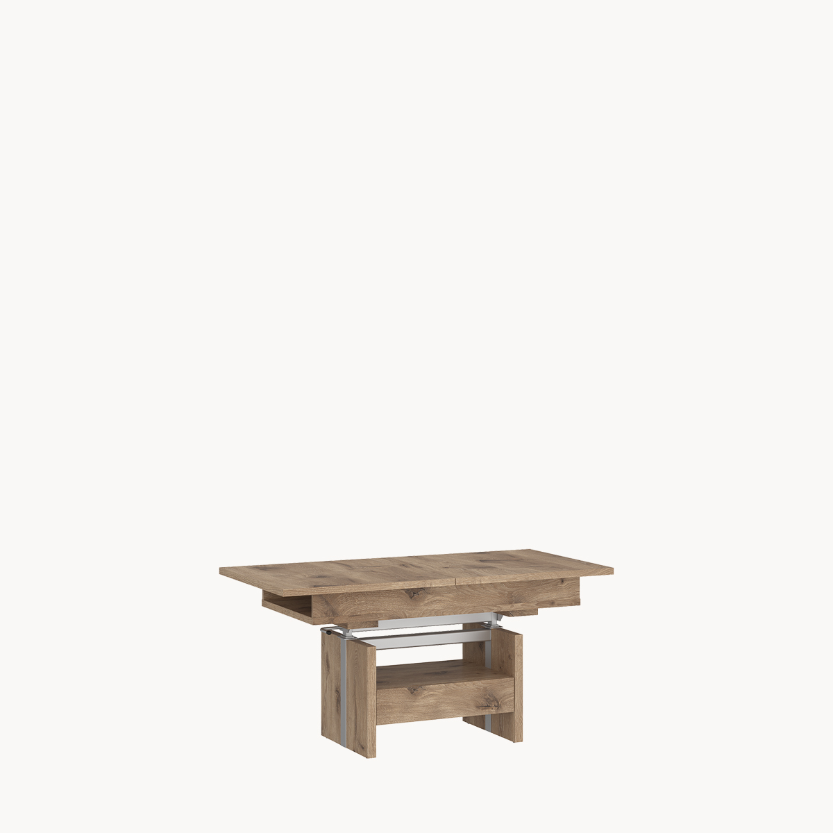 Ławostół z szufladą i półką, rozsuwany i podnoszony blat, dekor drewno