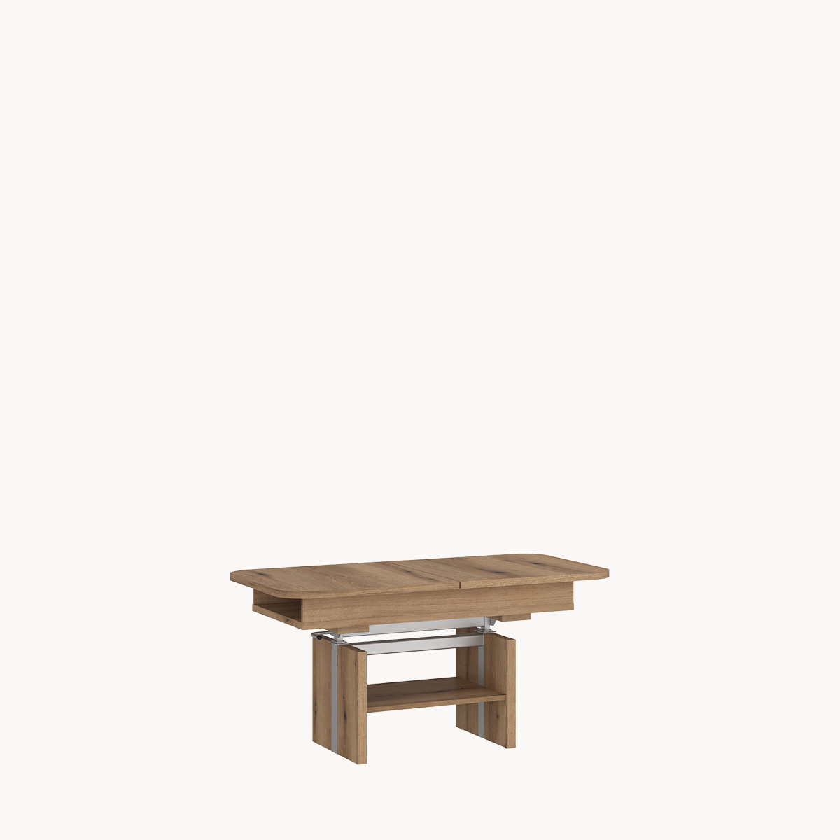 Ławostół z półką i zaoblonymi krawędziami, rozsuwany i podnoszony blat, kolor drewno