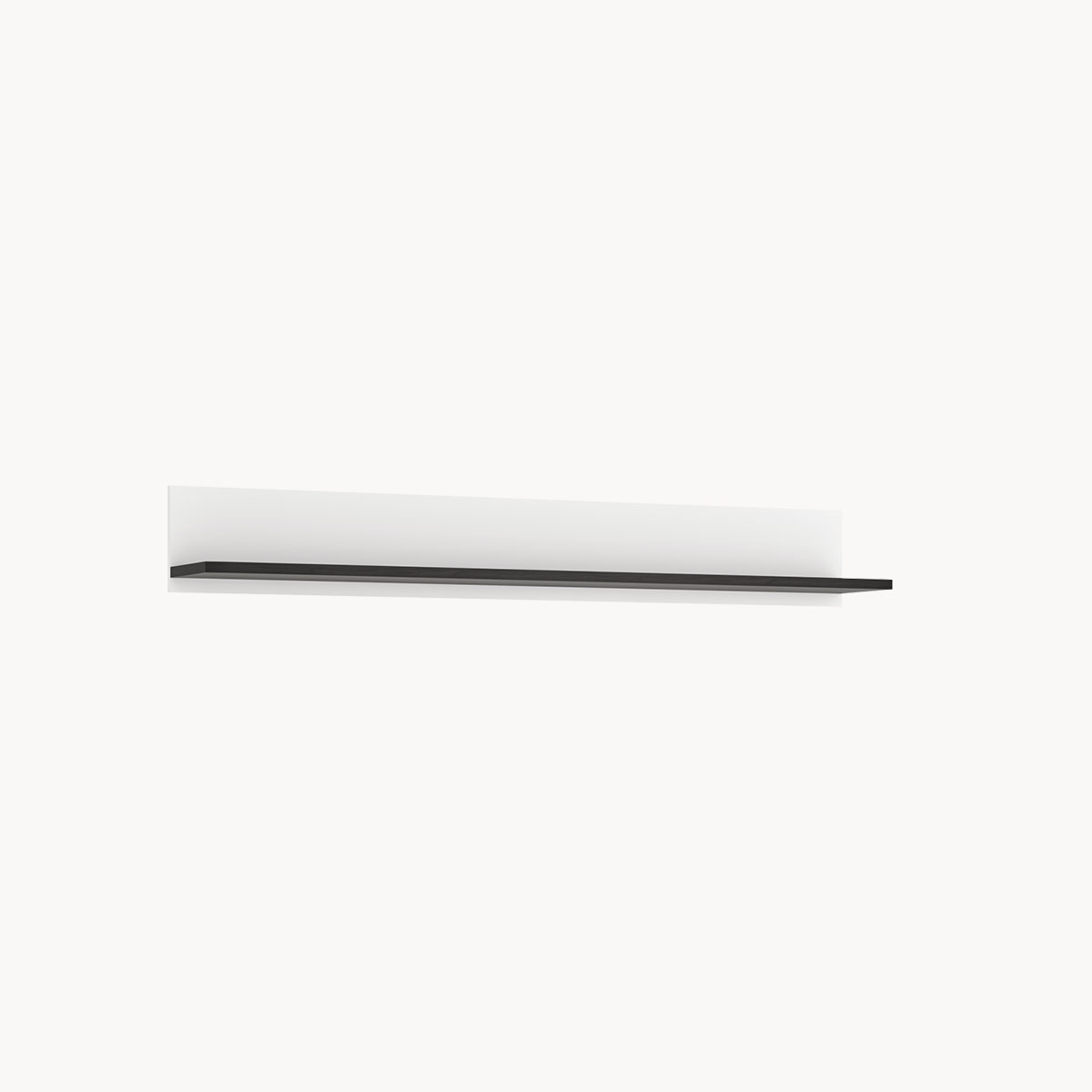 Półka ścienna asymetryczna, dekor jasne drewno, biały połysk