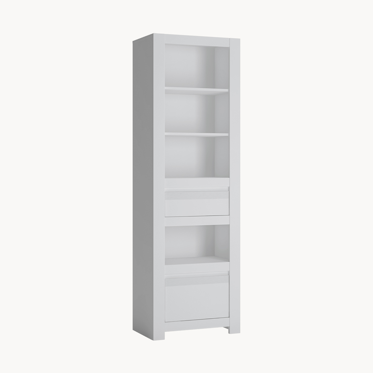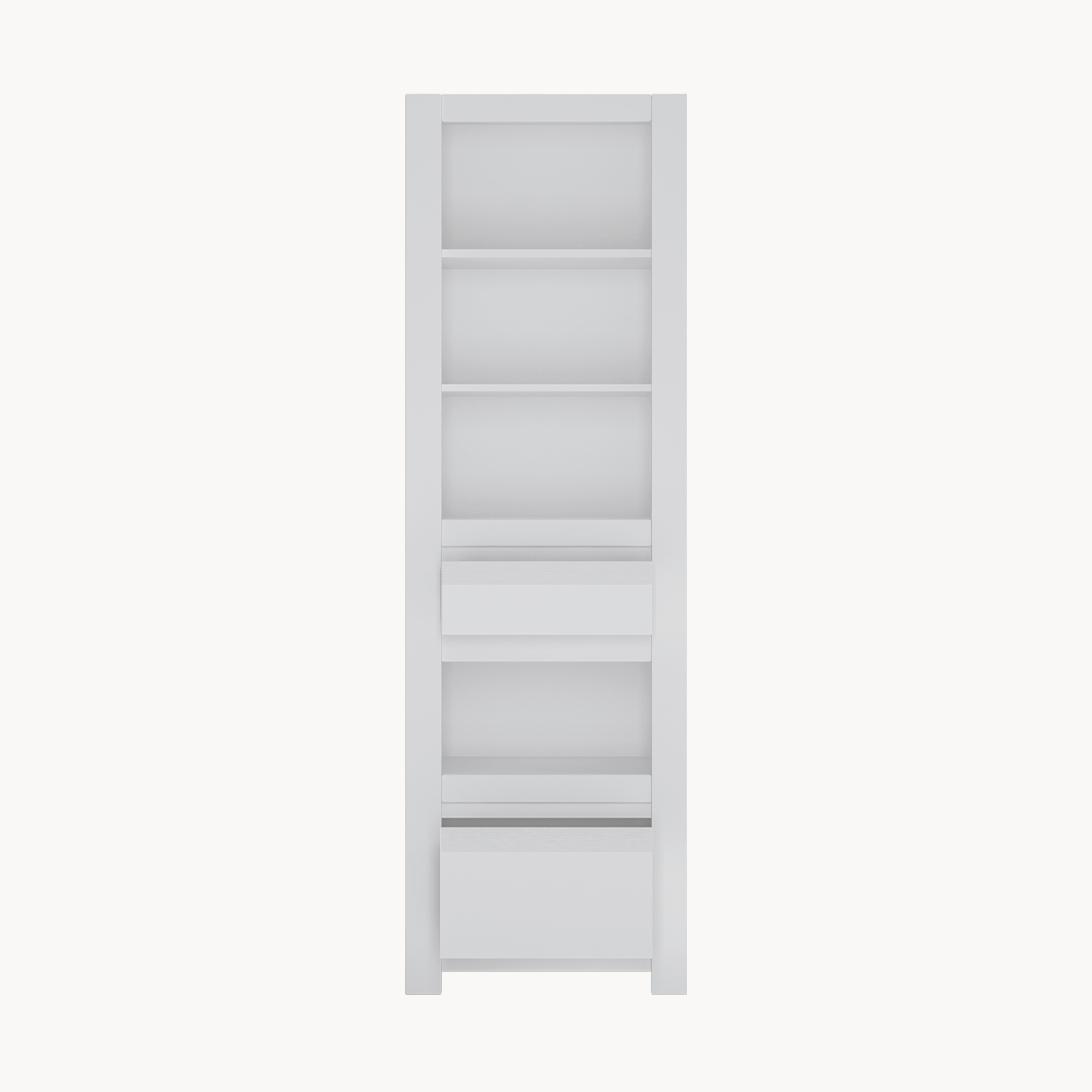 Wąski regał z szufladami, biały, bez uchwytów