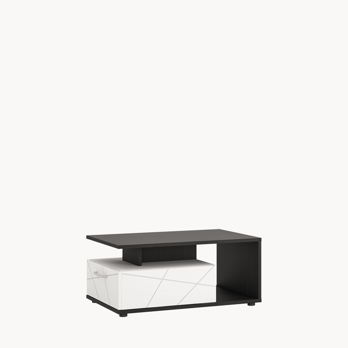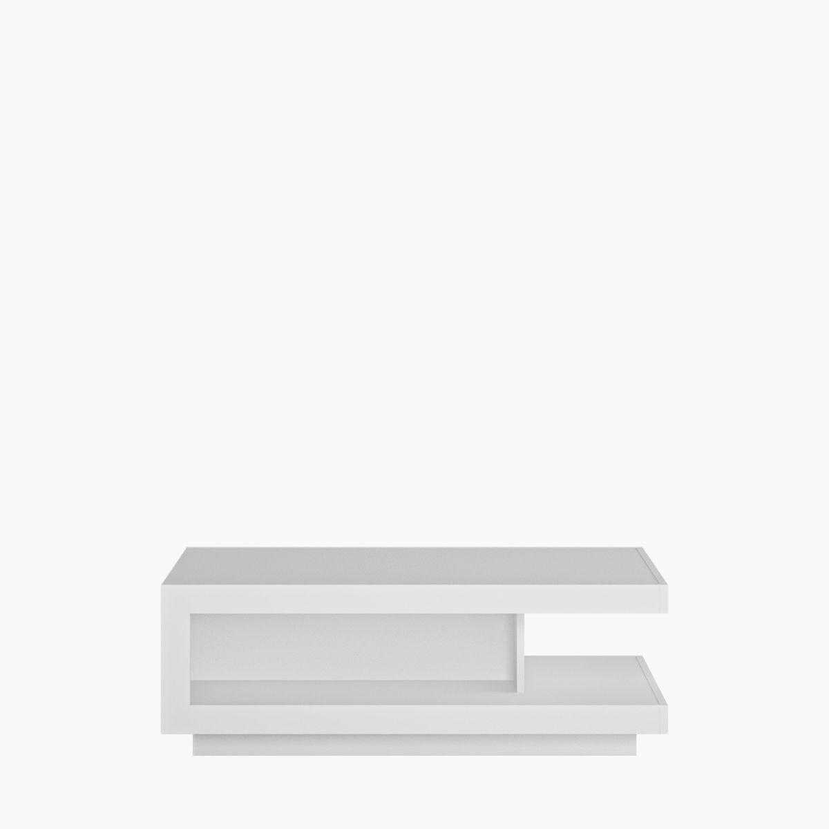 Stolik kawowy asymetryczny, z półką, biały połysk
