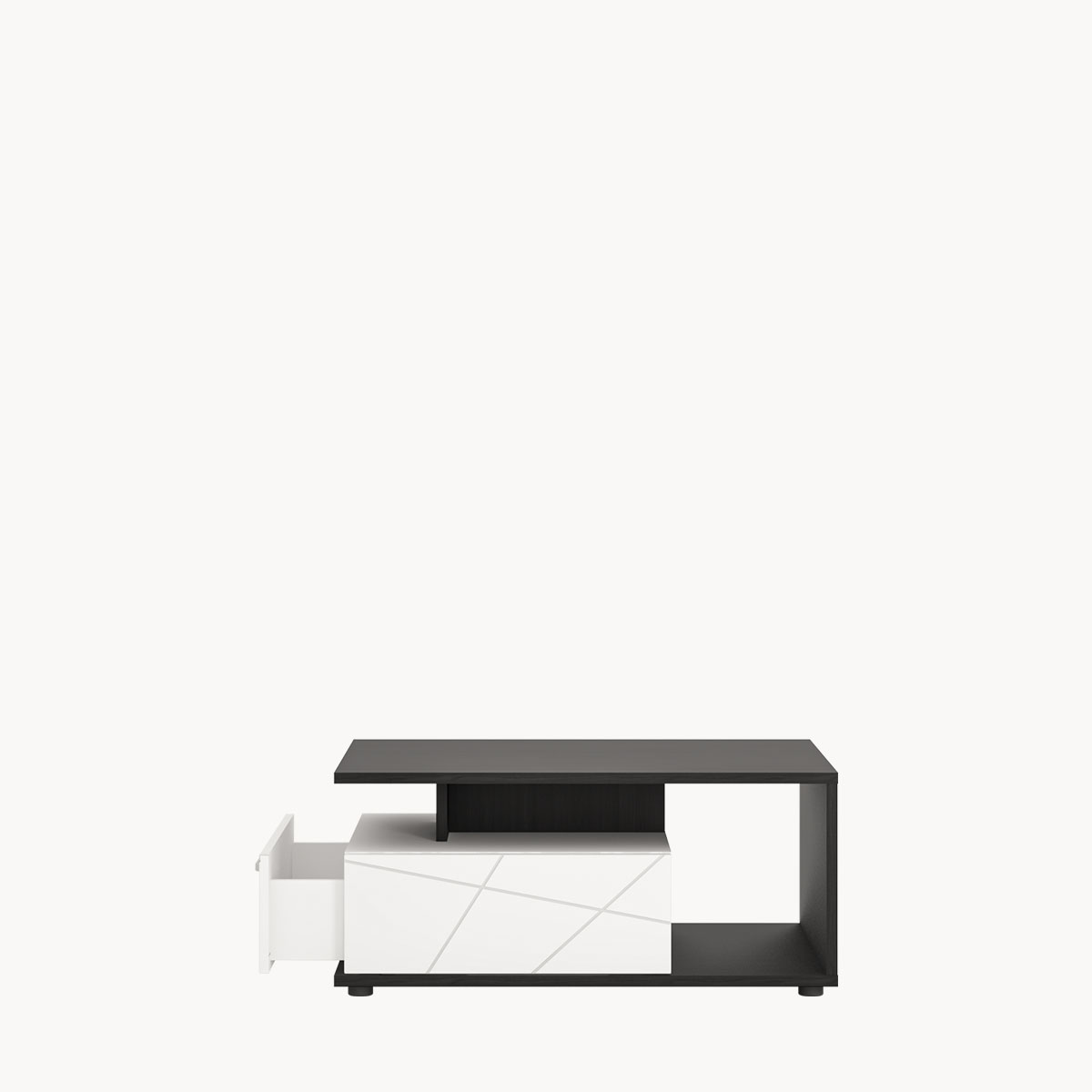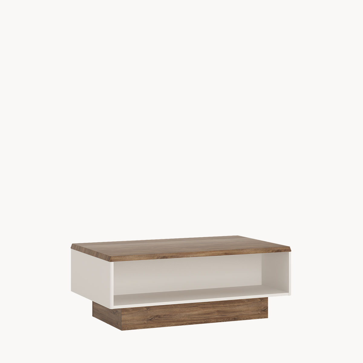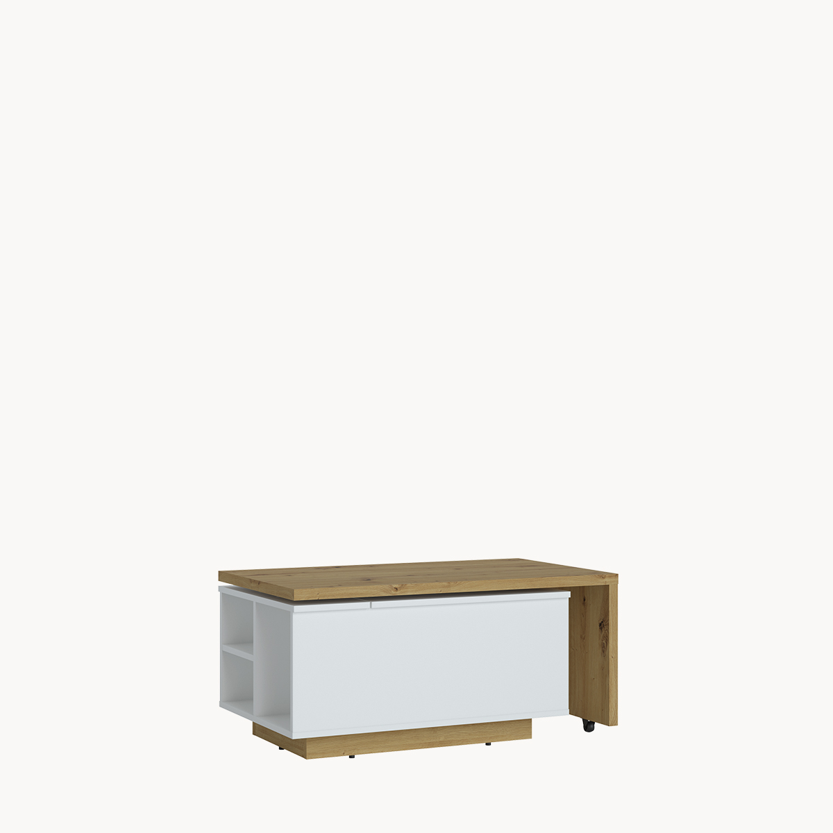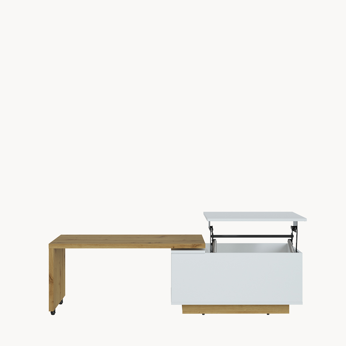 Stolik kawowy rozkładany, biel z kolorystyką drewna