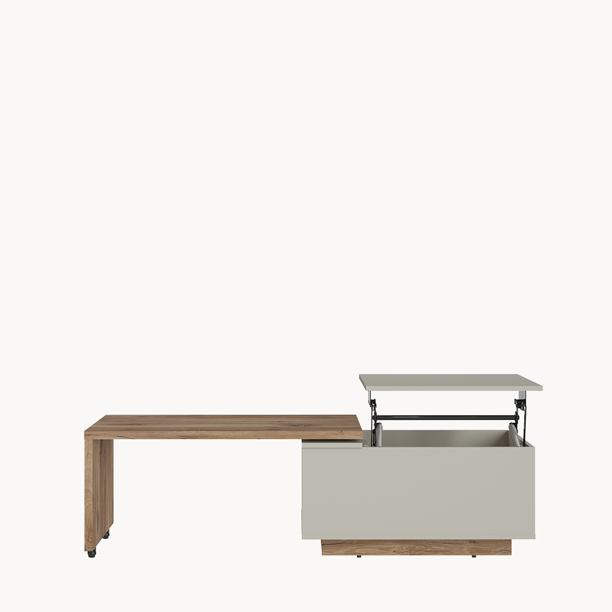 Stolik kawowy rozkładany, szary z kolorystyką drewna