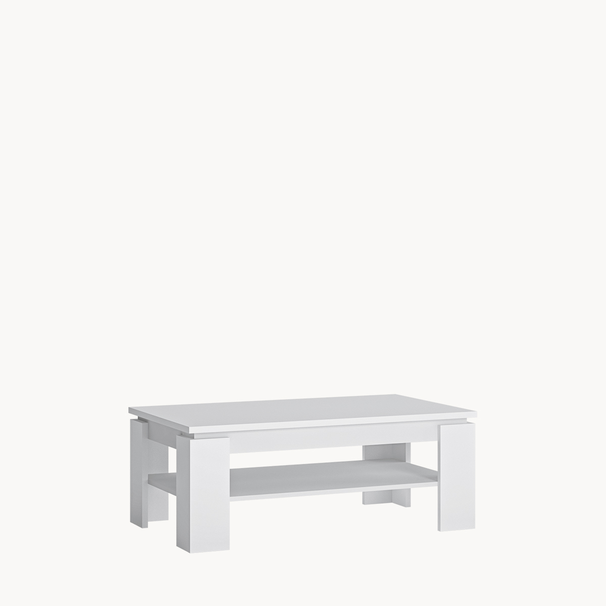 Stolik kawowy, kwadratowy, półka, biały połysk