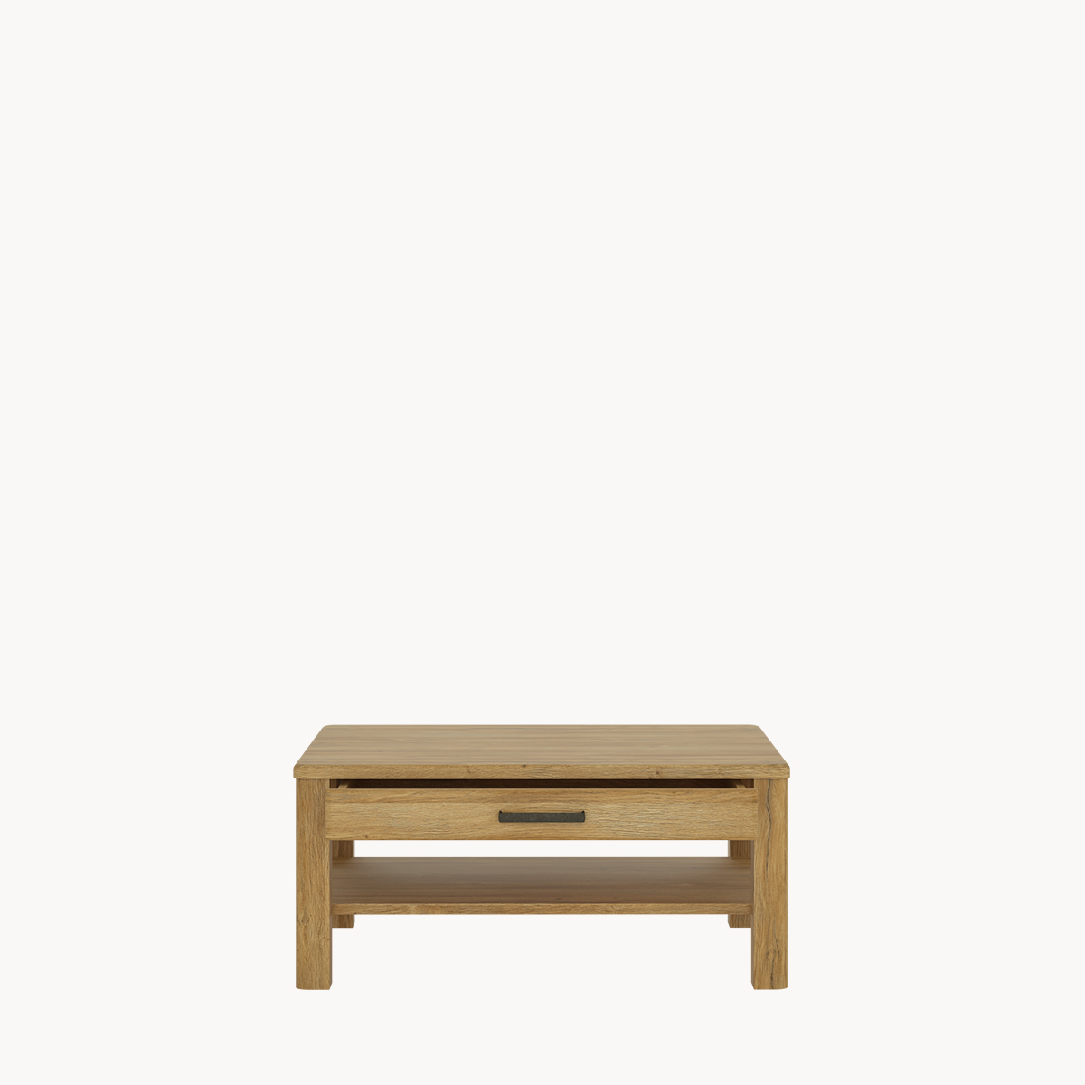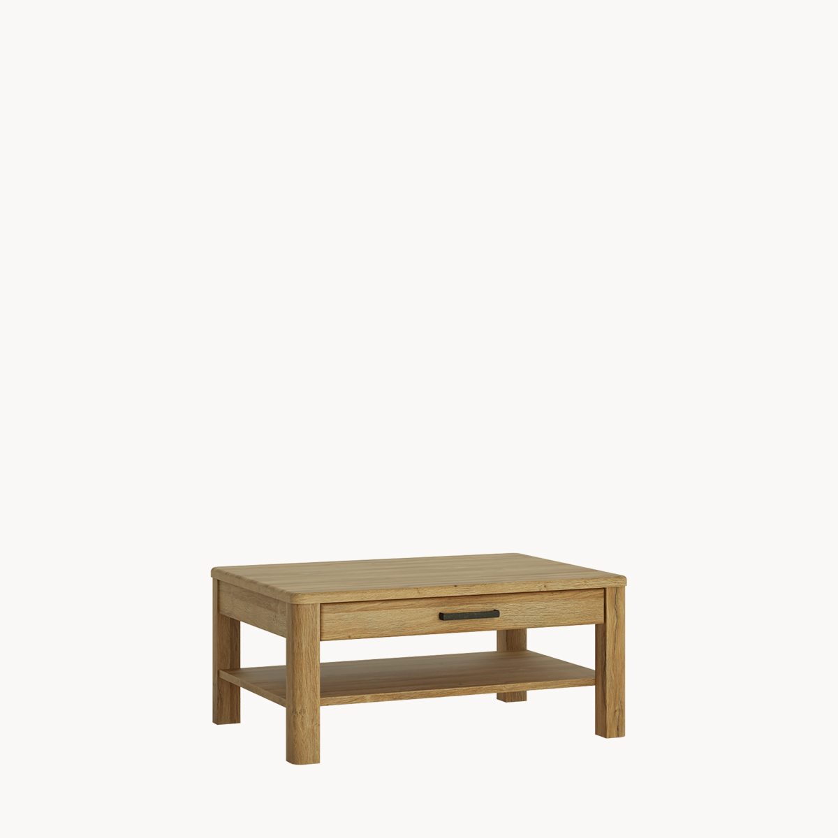 Stolik kawowy z szufladą i półką, dekor naturalne drewno
