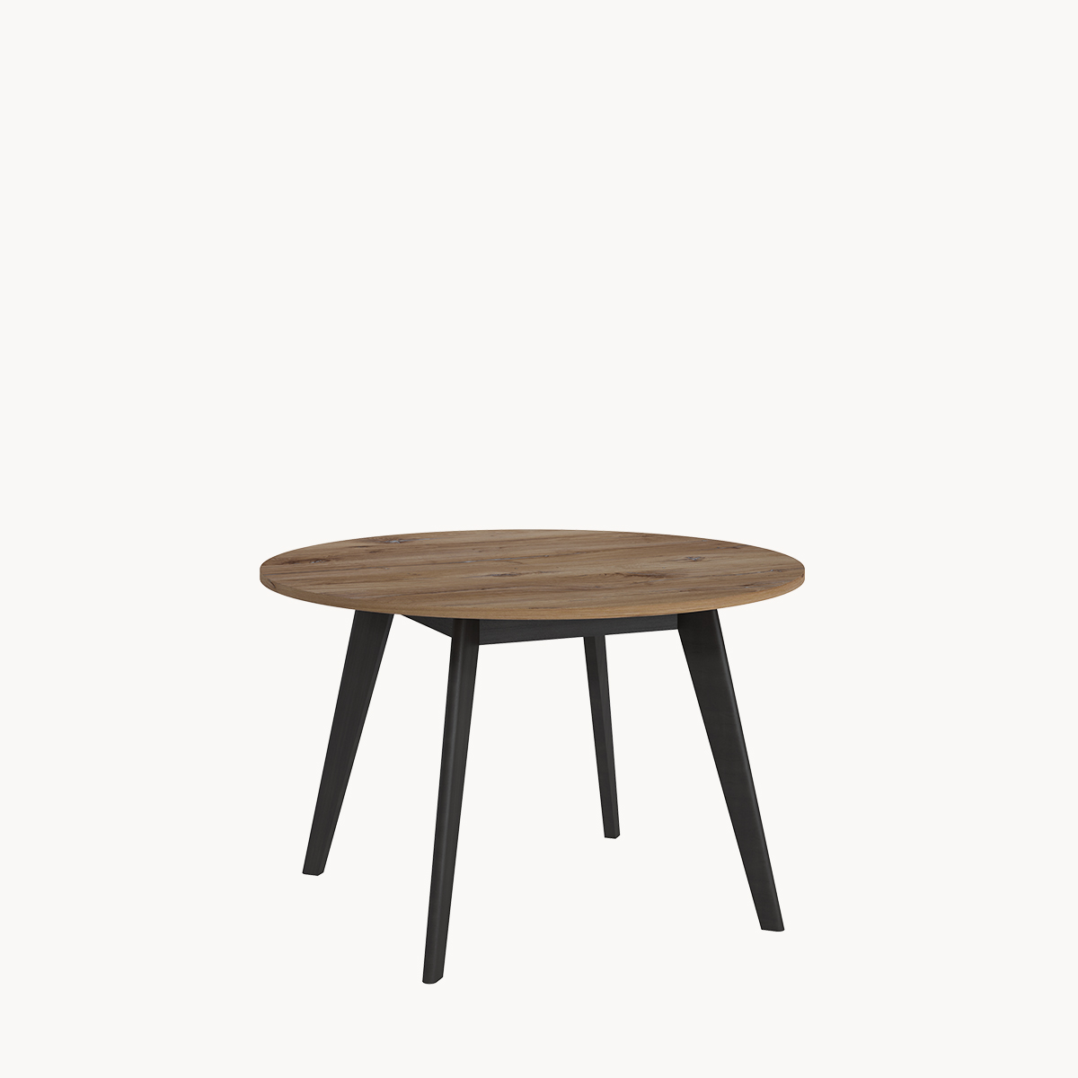 Okrągły stół nierozkładany, drewniany dekor, na czarnych nogach
