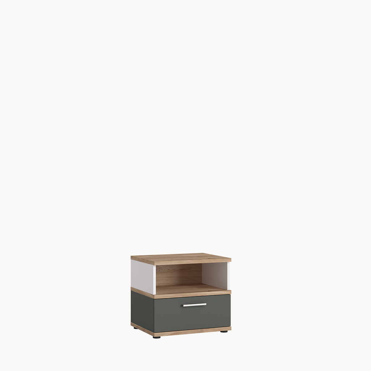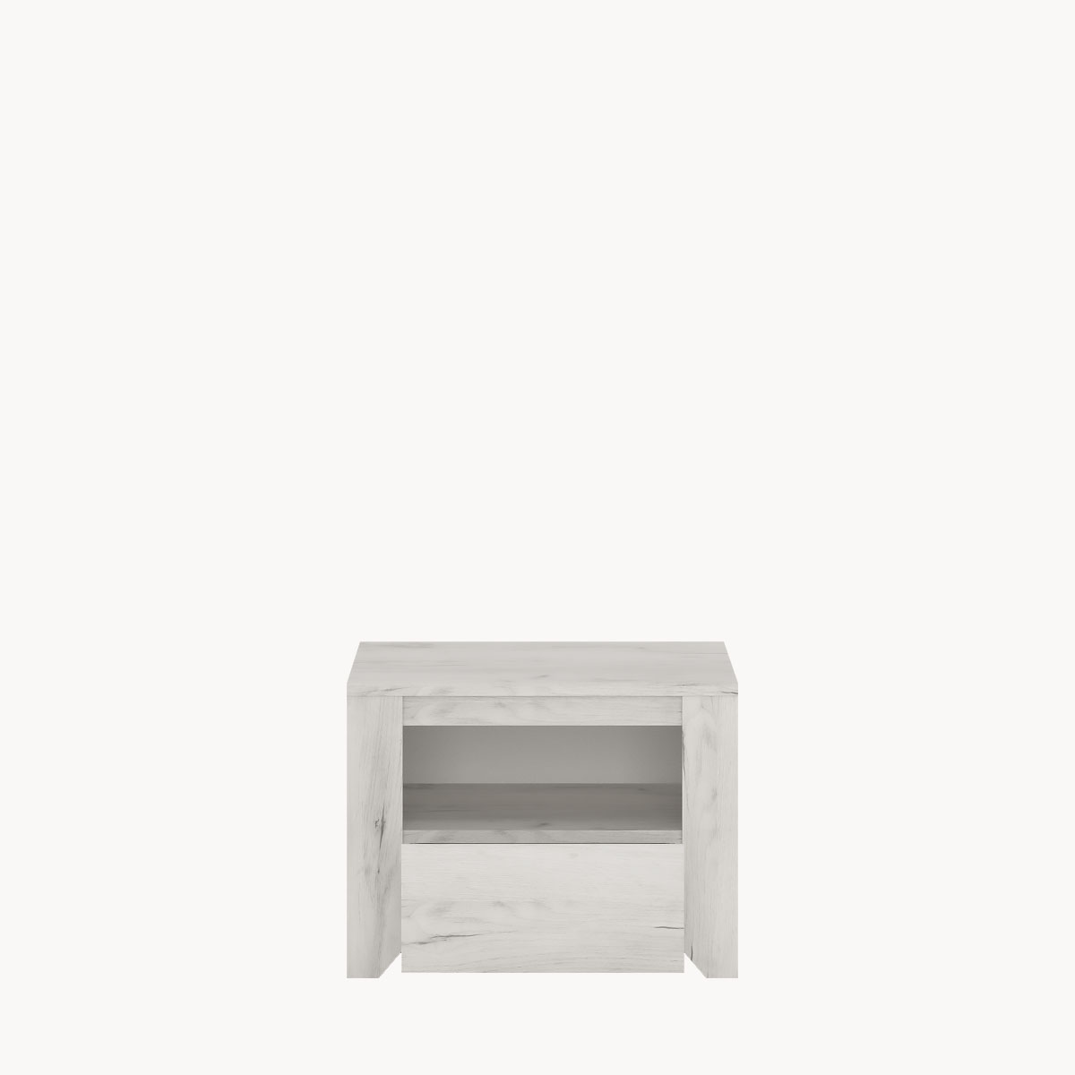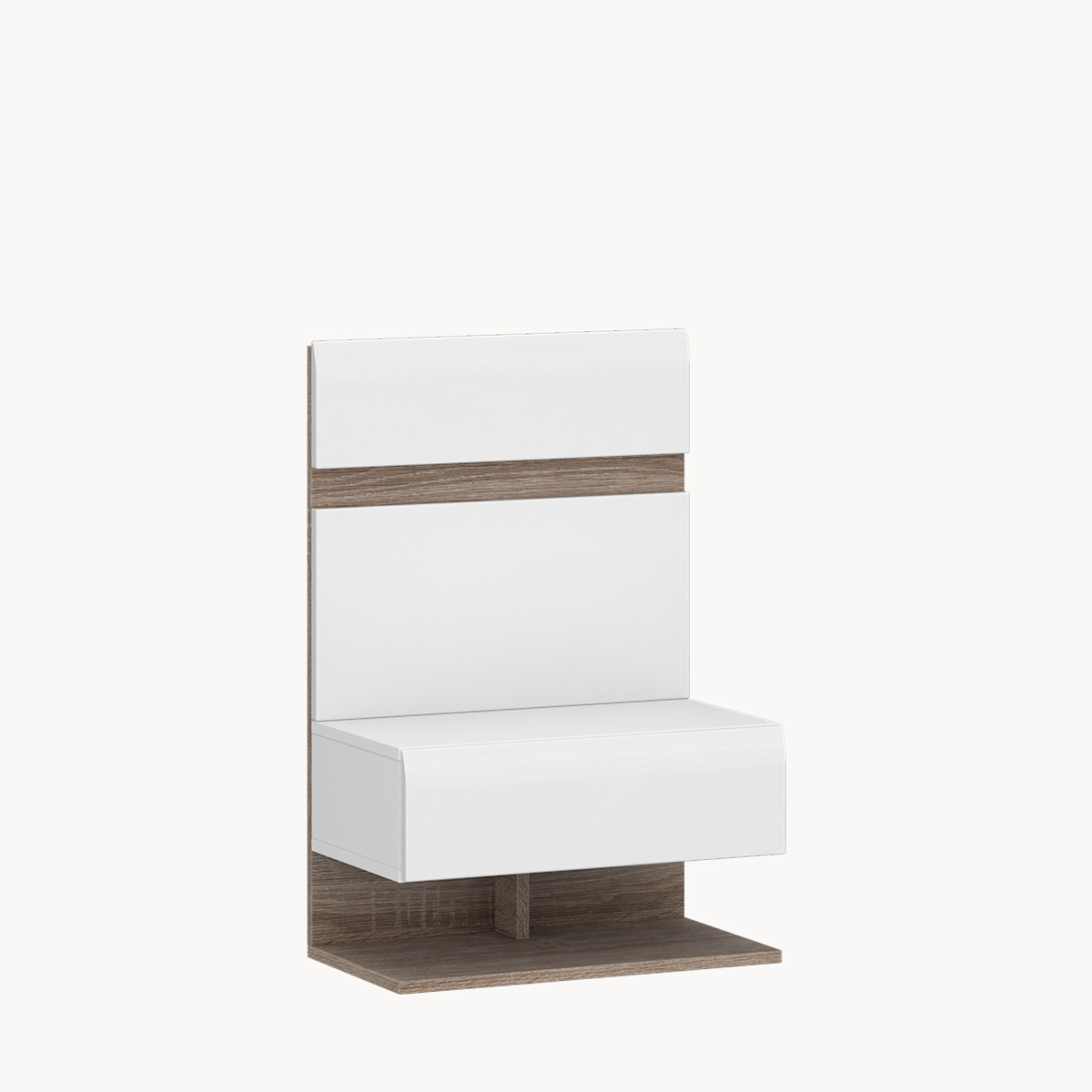 Szafka nocna z szuflada, prawostronna, dekor jasne drewno, biały połysk