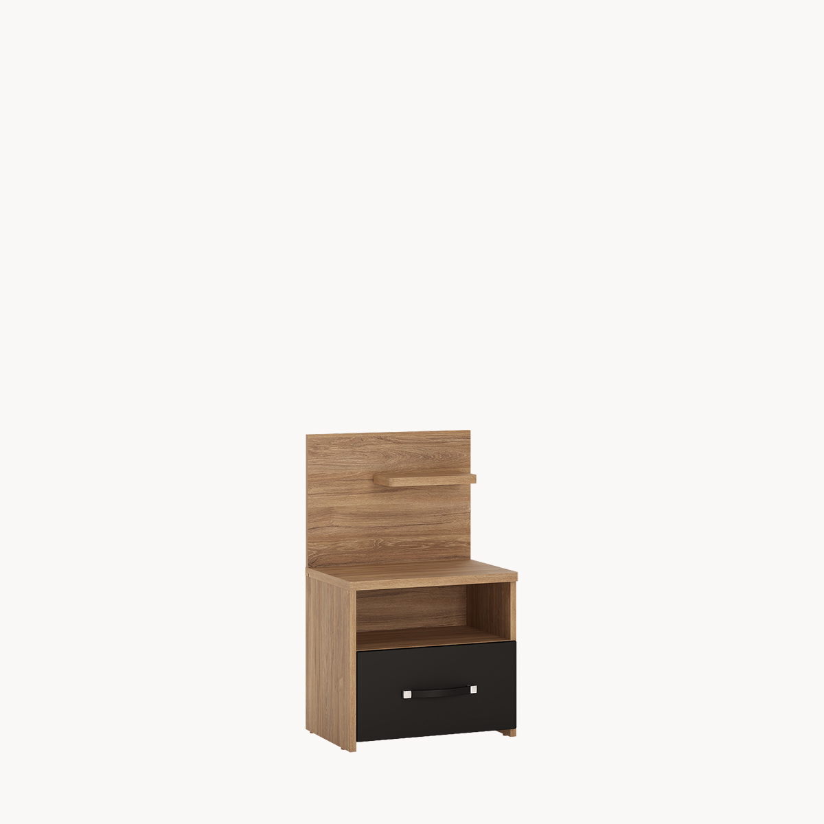 Szafka nocna, czarny mat z drewnianym dekorem, z metalowym uchwytem, prawostronna