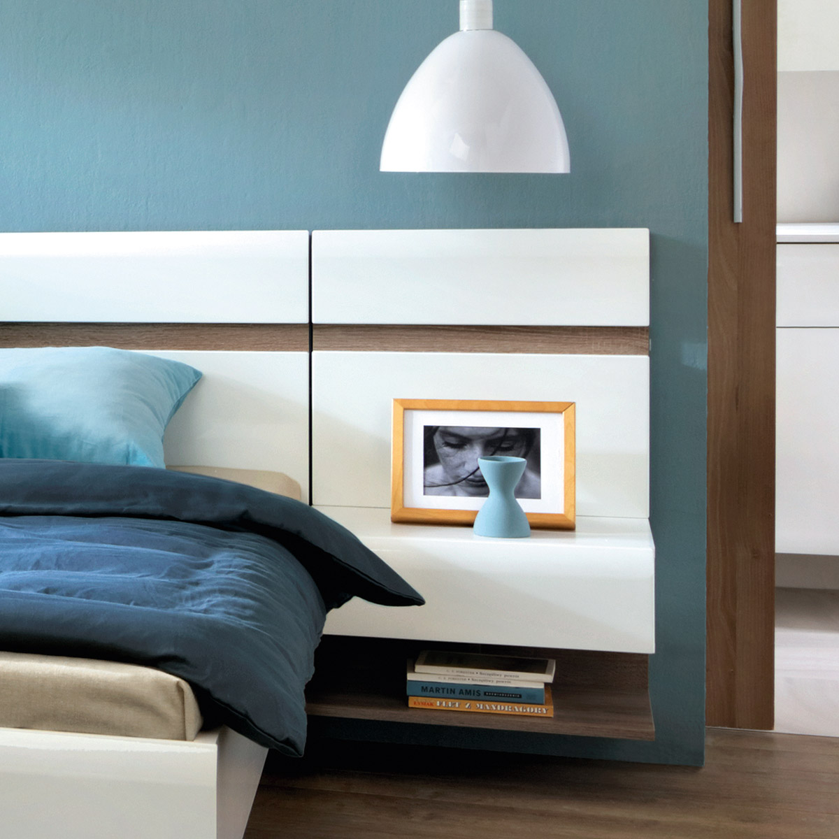 Szafka nocna, wisząca z szufladą i półką, biały połysk