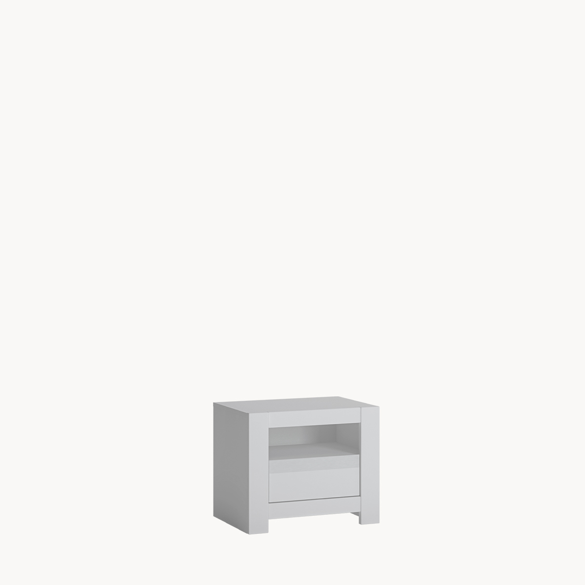 Szafka nocna z szufladą i półką, prawostronna, biały połysk