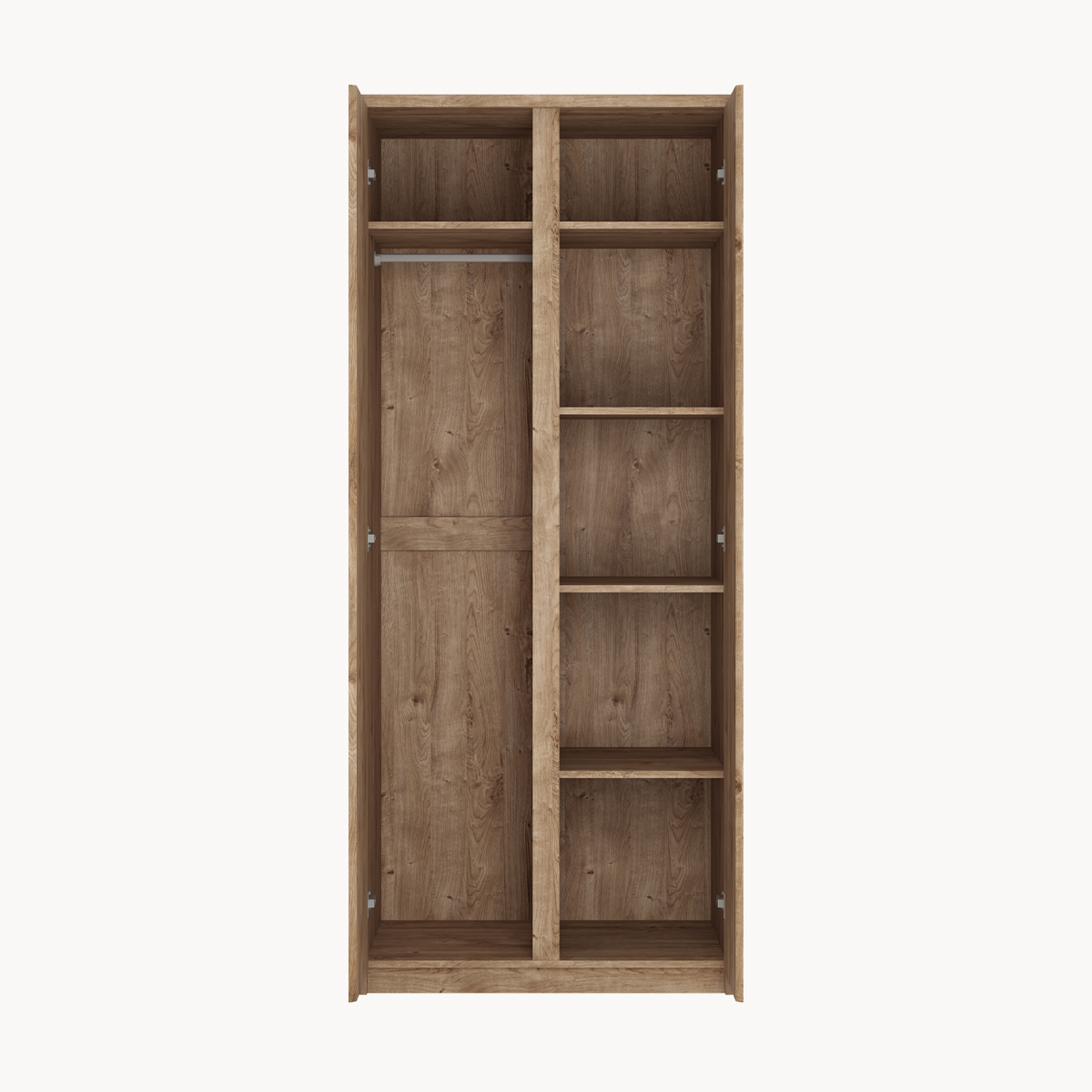 Szafa 2-drzwiowa, drążek, półki, dekor drewno