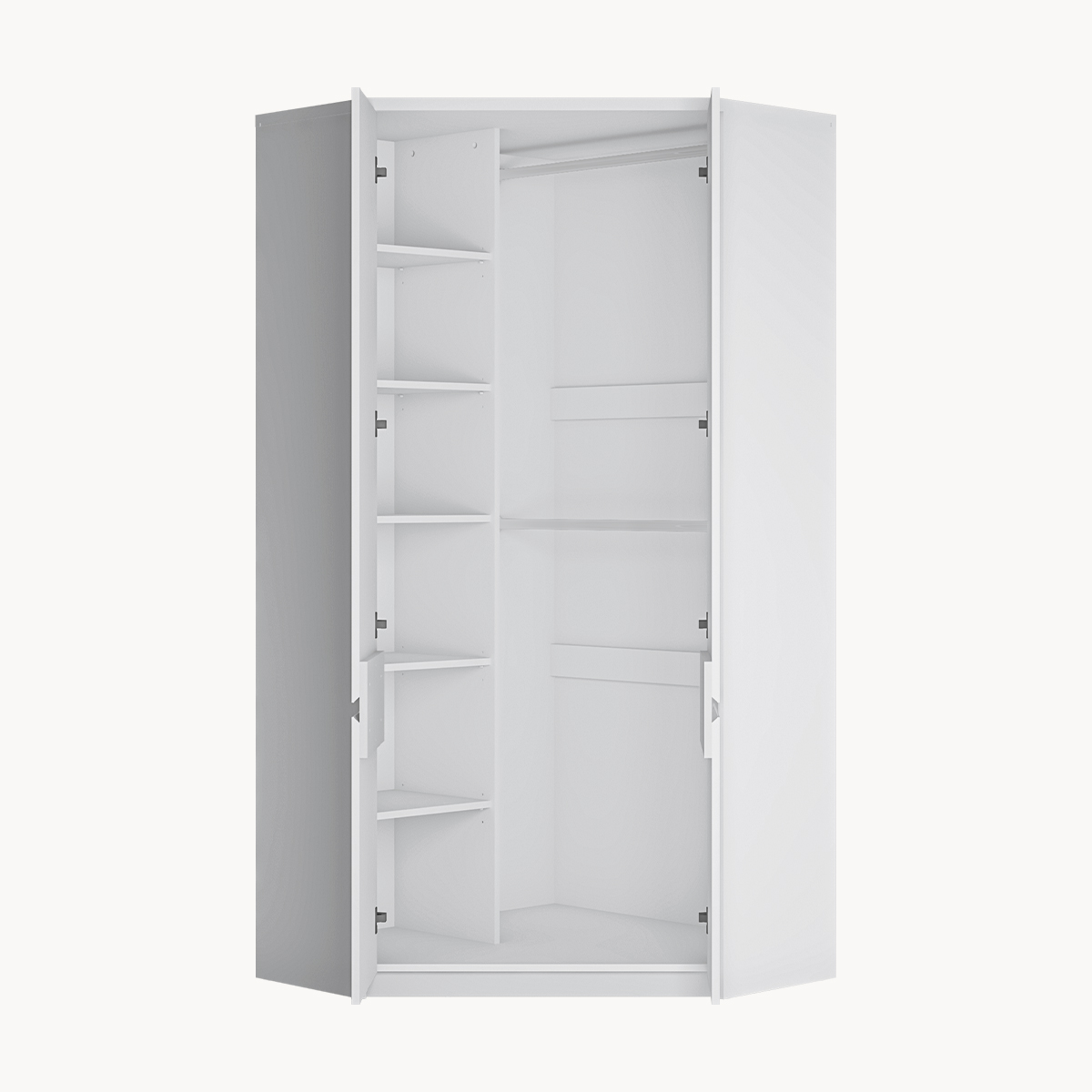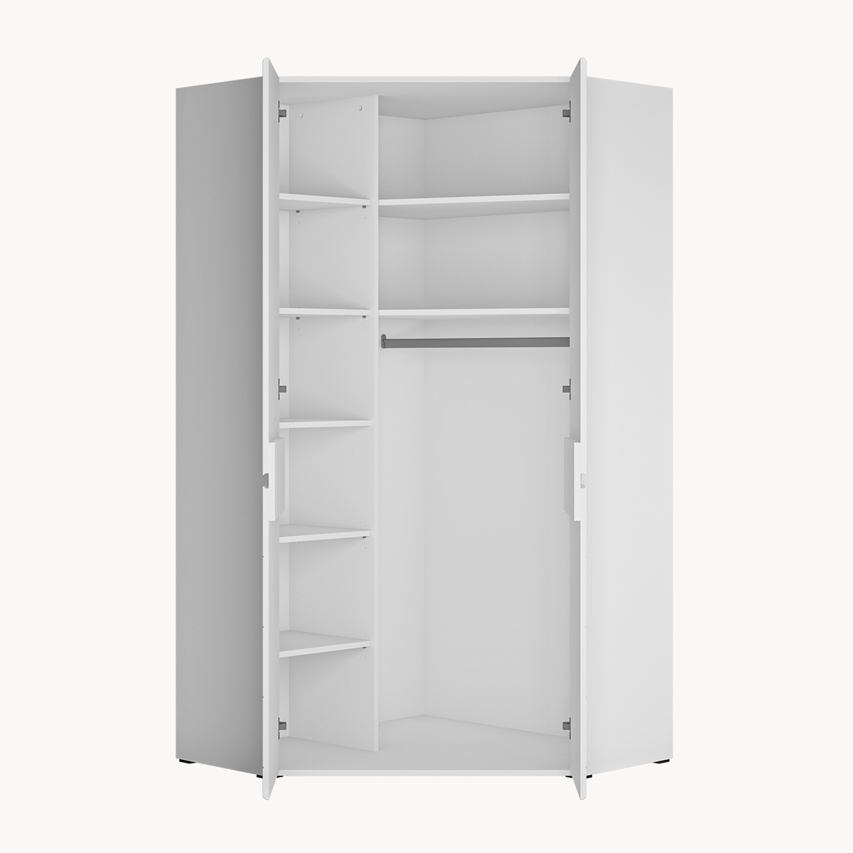 Szafa narożna 2-drzwiowa, drążki, półki, biała