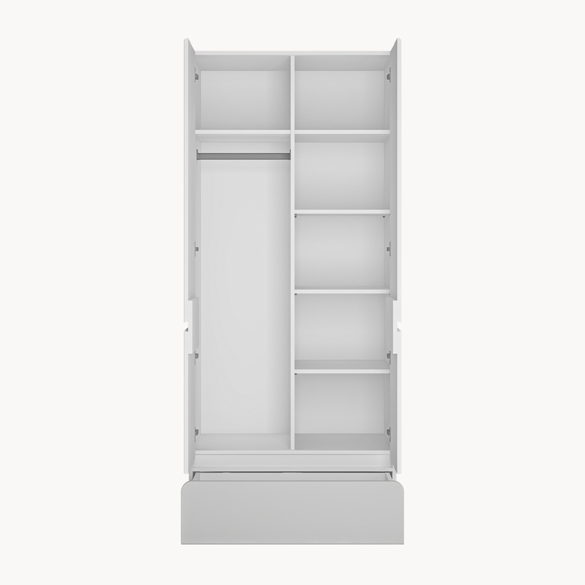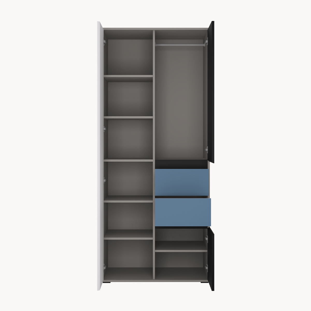 Szafa 2-drzwiowa z szufladami i ozdobnymi półkami, kaszmir