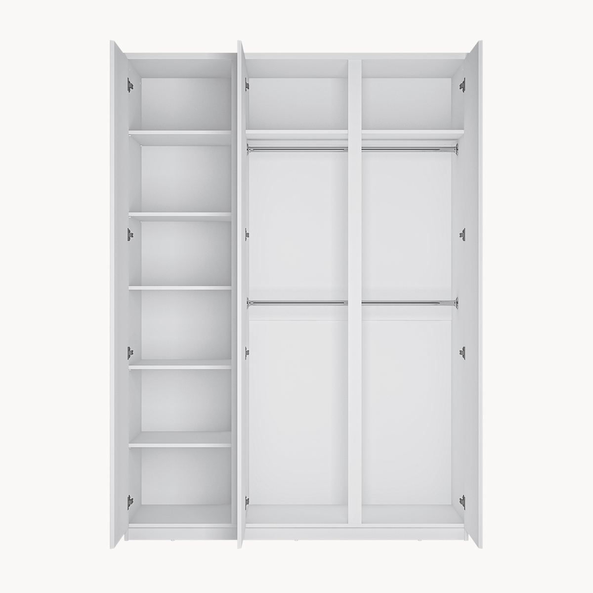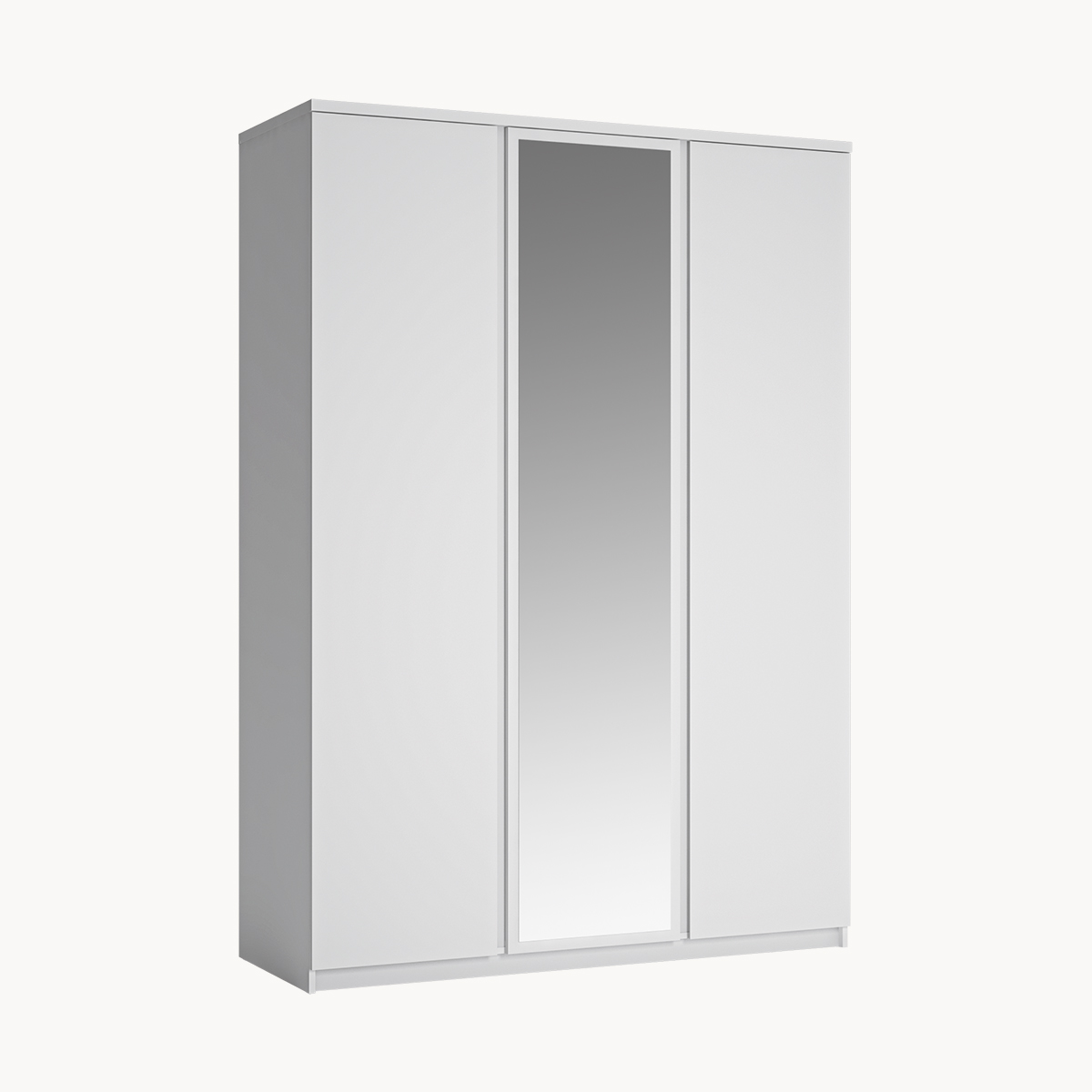 Szafa 3-drzwiowa z lustrem, drążki, półki, biały połysk