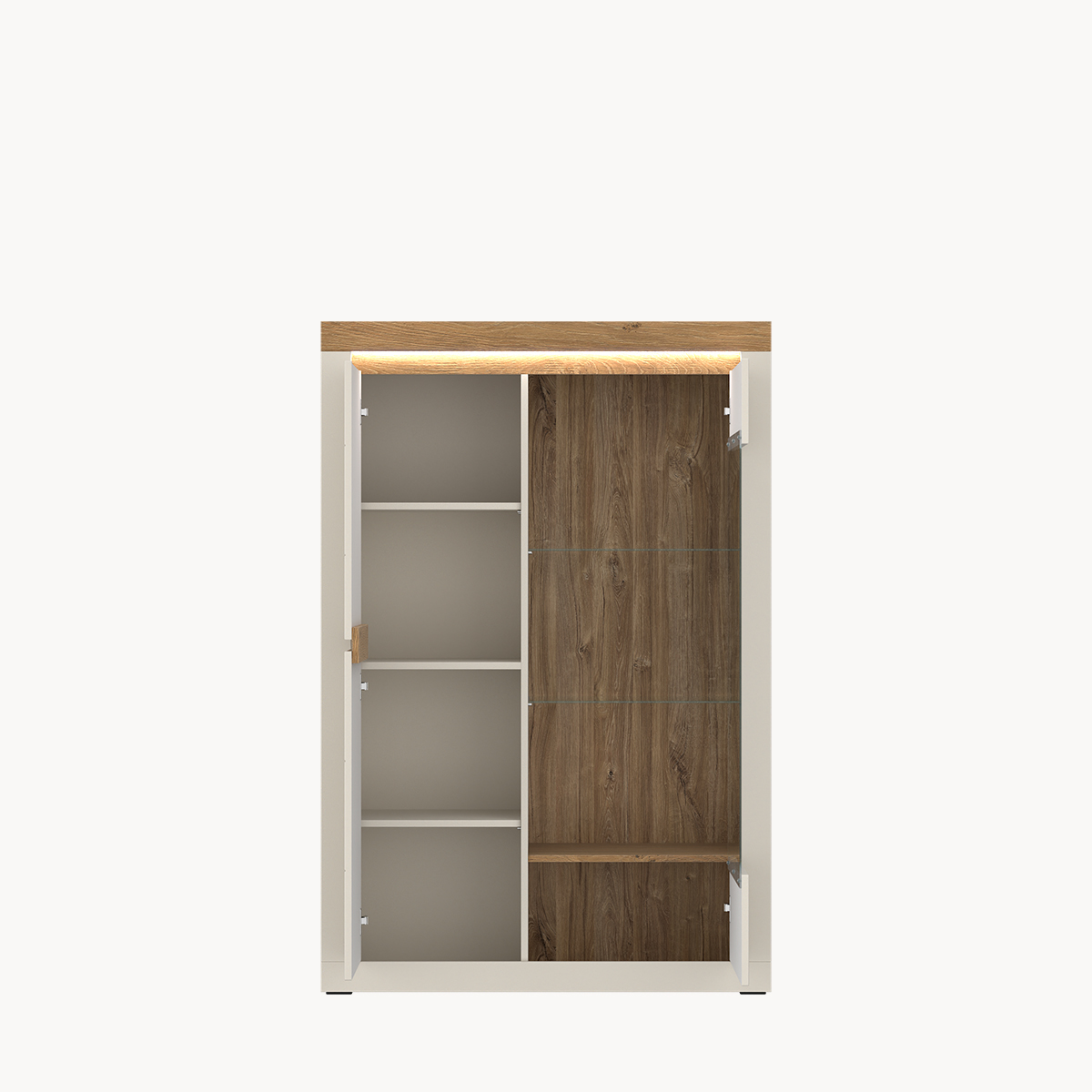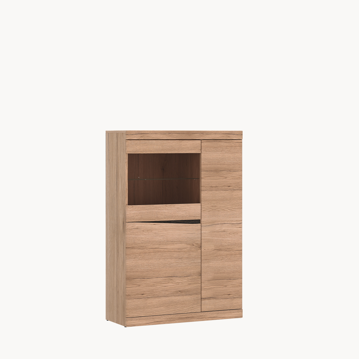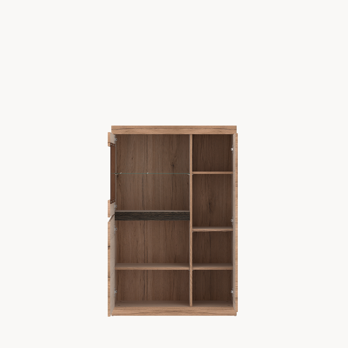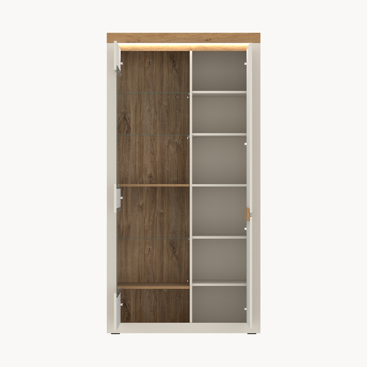 Istnieją wersje z dużymi przeszklonymi powierzchniami jak w kolekcjach Imperial czy Fribo. Pozwalają na ekspozycję większej ilości przedmiotów – każda półka może być zaaranżowana w inny sposób. Nadają się świetnie szczególnie do przechowywania dużej zastawy stołowej czy książek, stanowiąc wtedy swego rodzaju biblioteczkę.