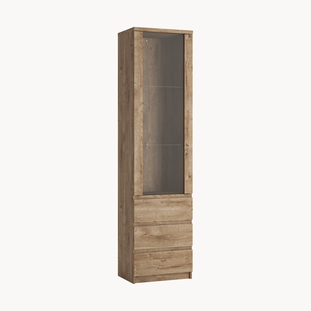 Drugą kluczową cechą jest wysokość mebla. Pionowe szafy zajmują mniejszą powierzchnię i doskonale sprawdzają się jako witryny narożne do salonu. Z kolei niskie modele, niczym komody pozwalają dodatkowo wykorzystać swoją górną powierzchnię jako blat. Można na nim ustawić sprzęt RTV albo zaaranżować jako kolejną eskpozycję.