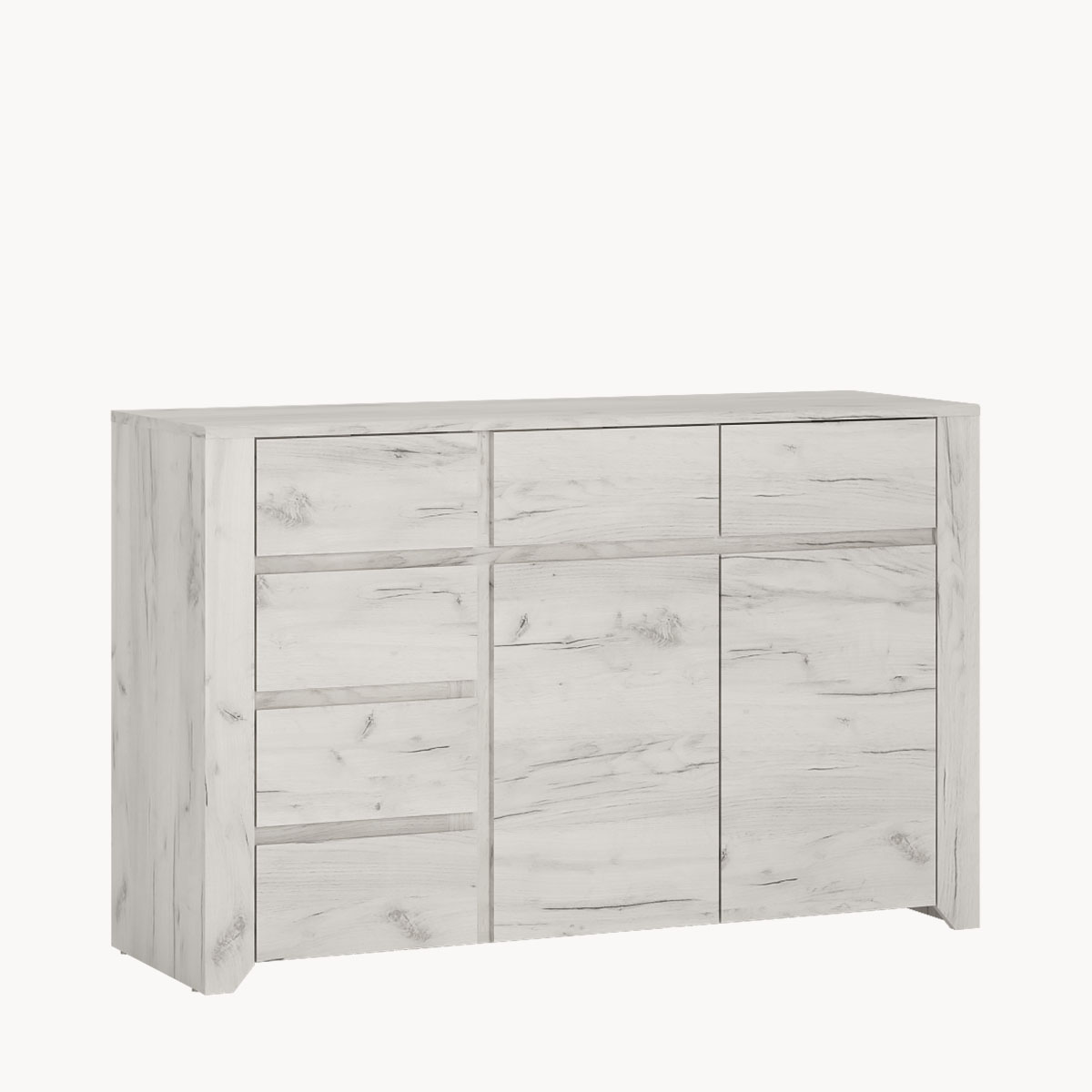 Komoda 2-drzwiowa z 6 szufladami, dekor bielone drewno